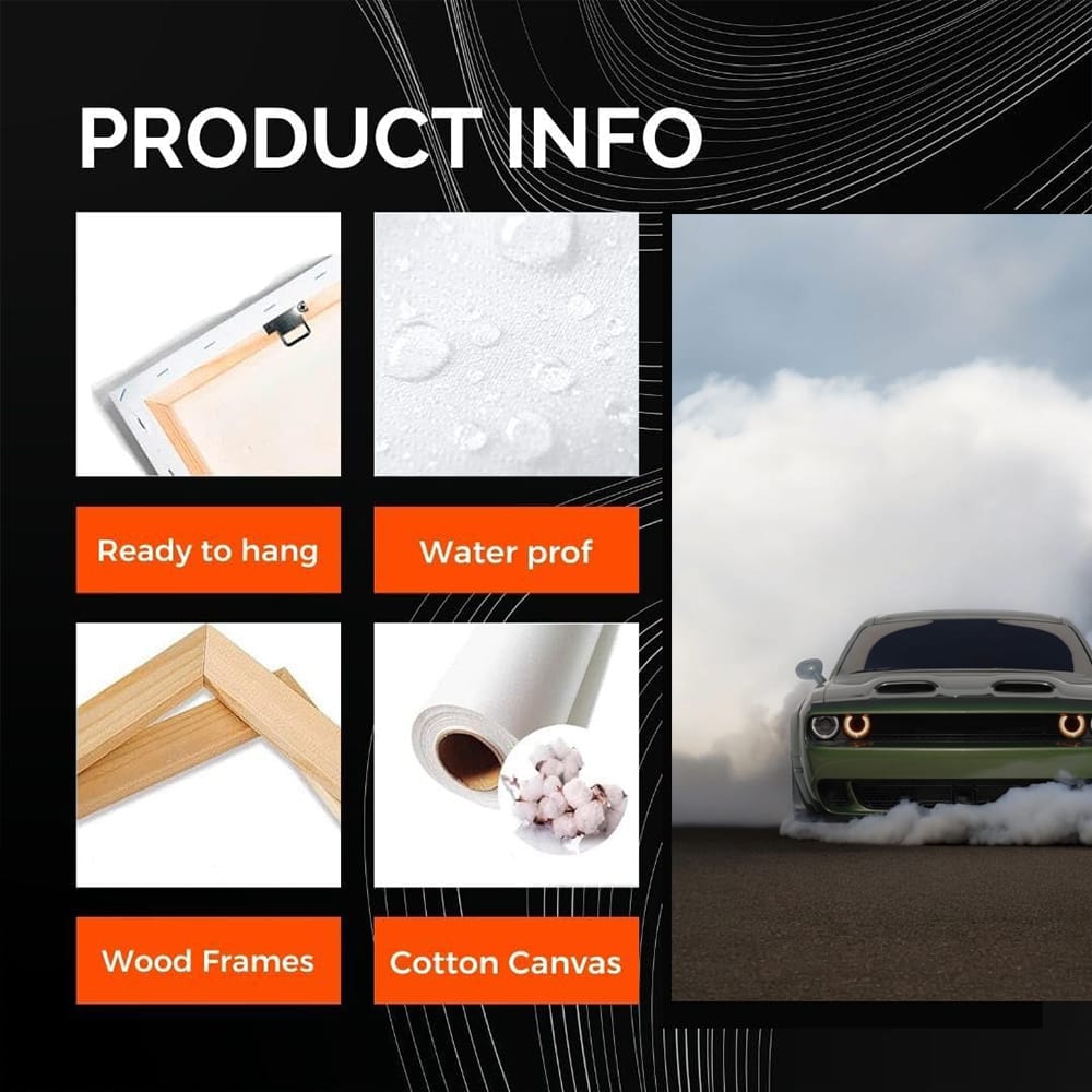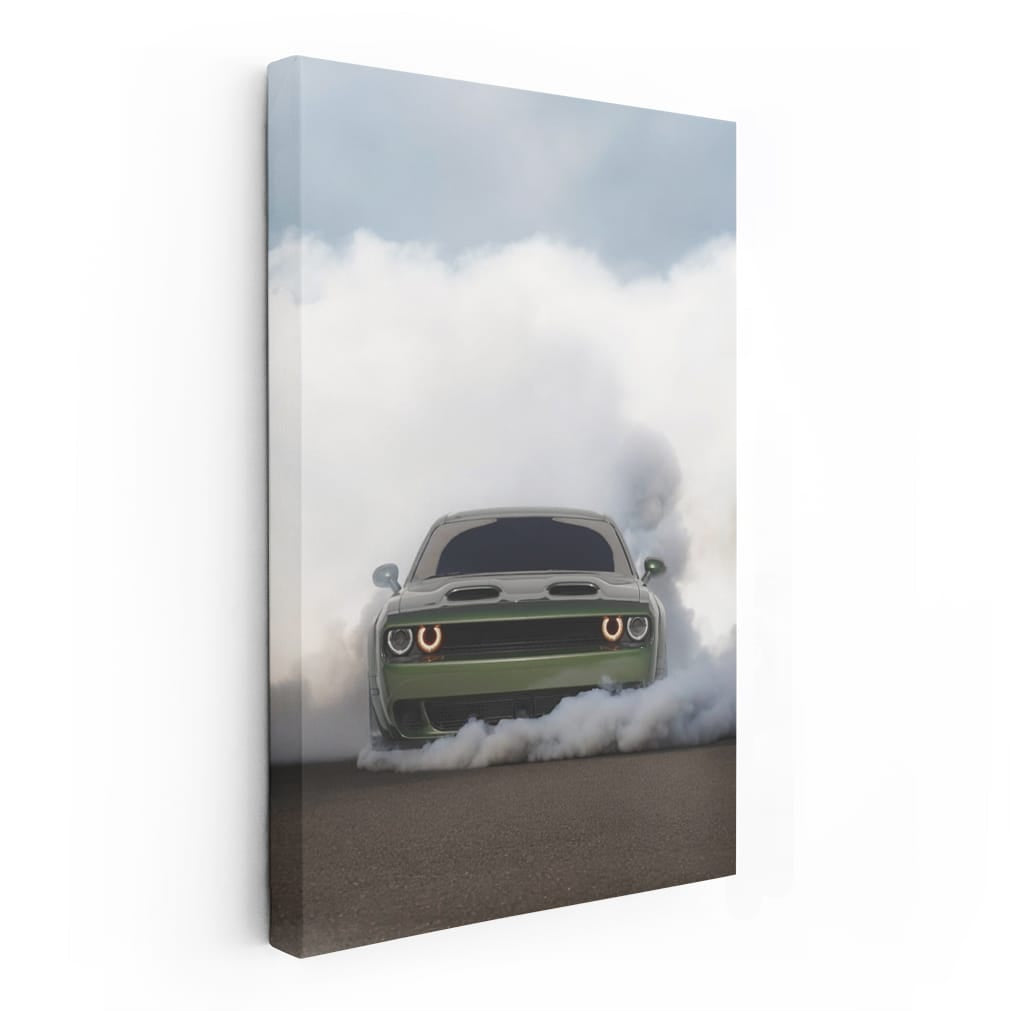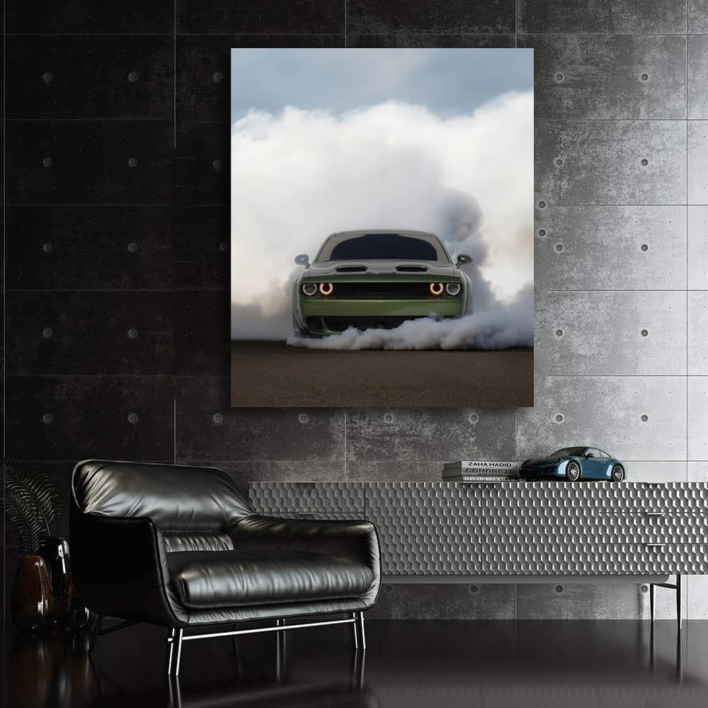 This poster is pure adrenaline on the wall. Dodge in smoke, as if it just escaped from hell. The painting screams power and speed. Wall art for those who live on the edge. This is not just an image, but a challenge to everything that is slow and boring. See more from the collection: Dodge Art