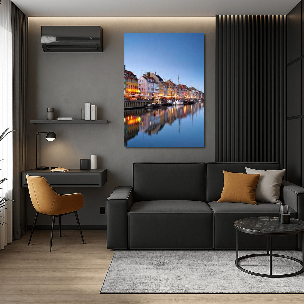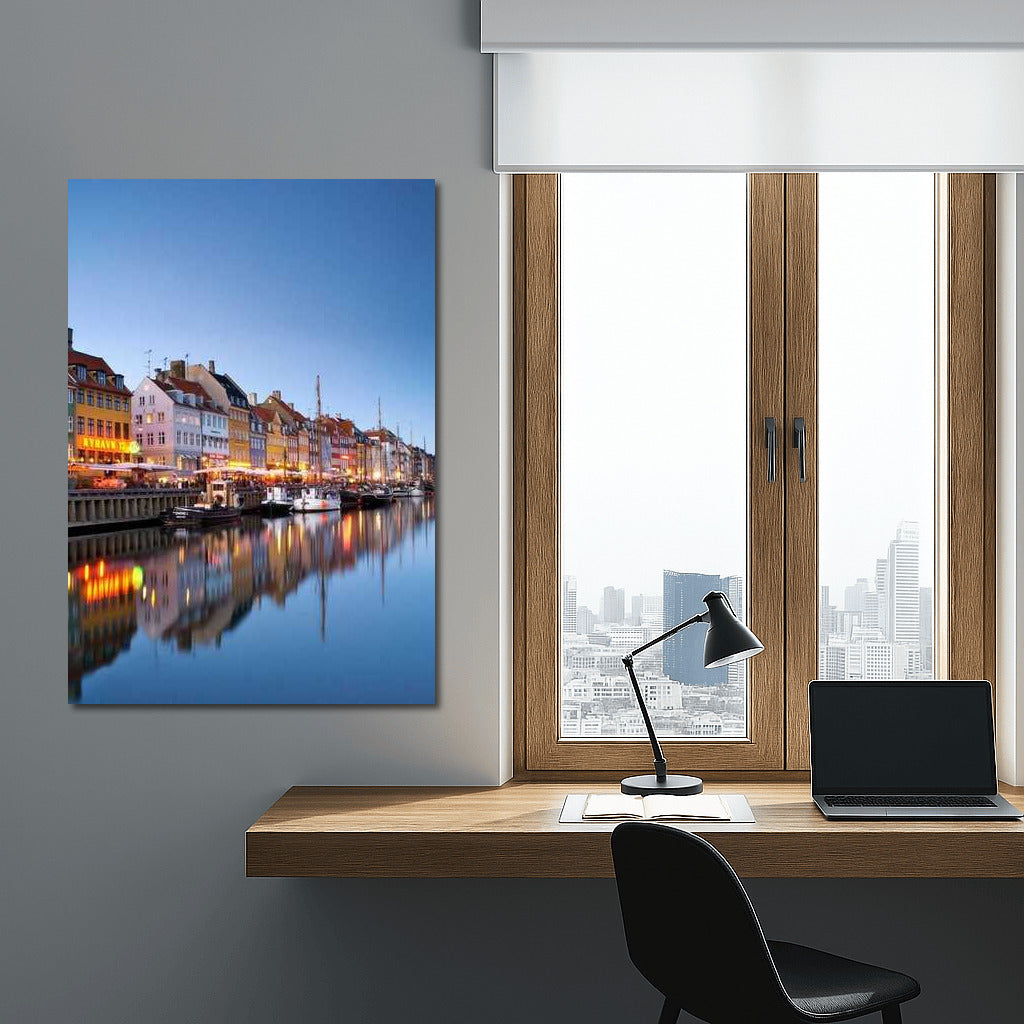 Evening Lights of Copenhagen Waterfront: The Charm of Denmark Wall Art