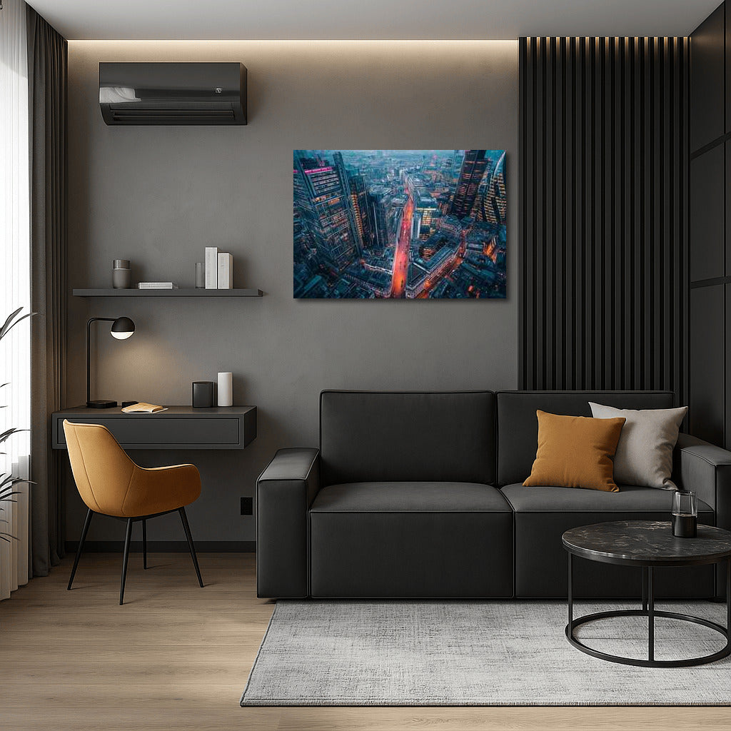 Urban fairy tale on a poster: London at night in bright lights. Breathe in the atmosphere of the United Kingdom with this wall art. See more from the collection: Country Art