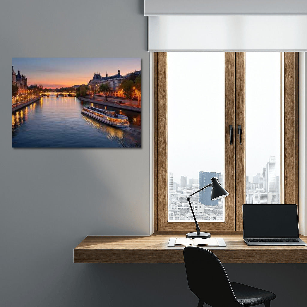 Evening Paris: Lights Glow over the Seine, France Wall Art