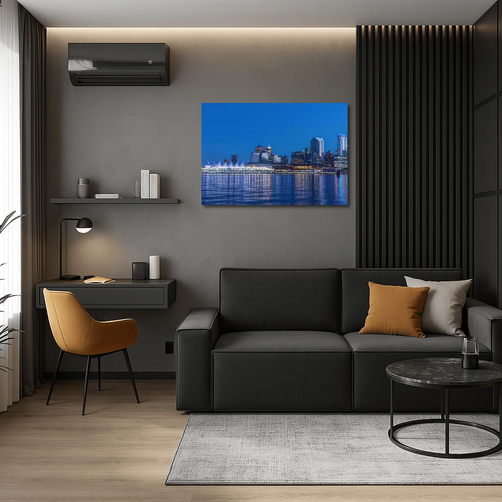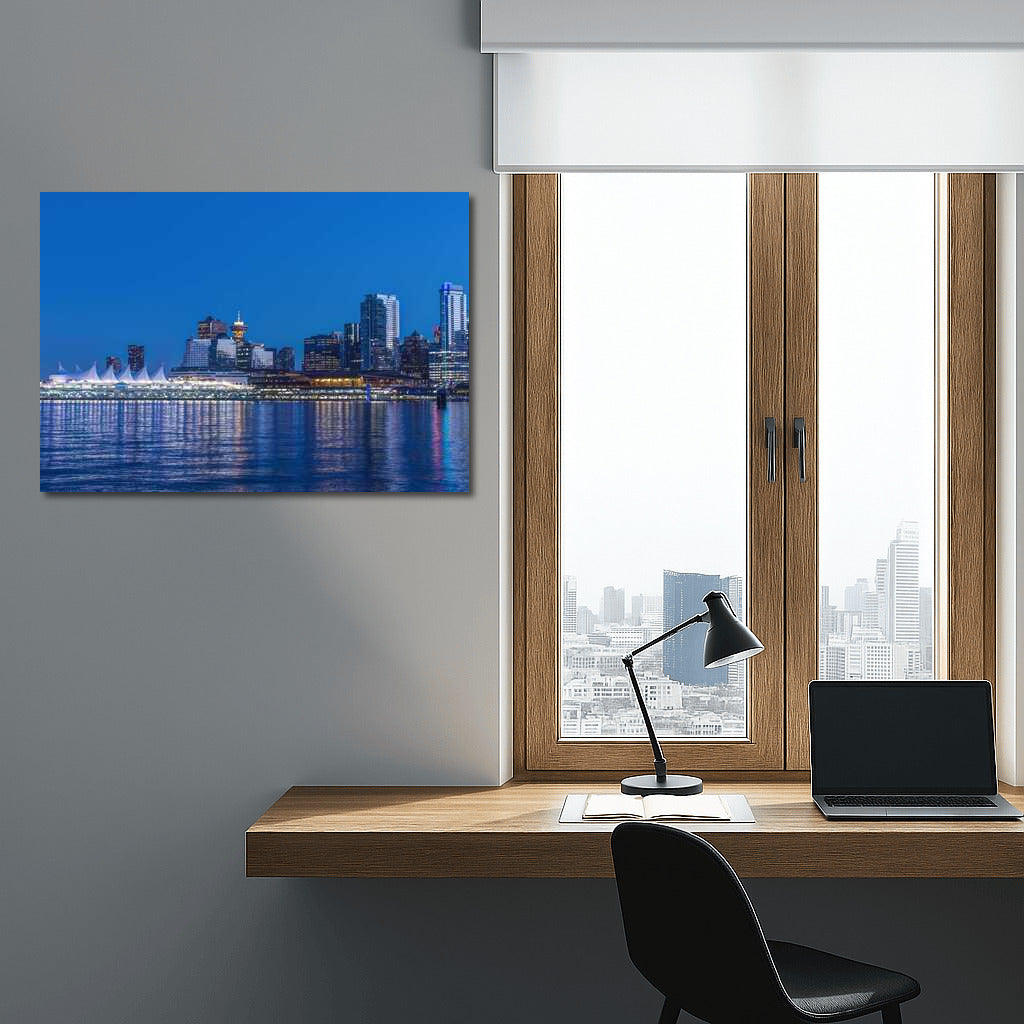 Evening Silhouette: Vancouver Lights in Cityscapes Skylines Wall Art