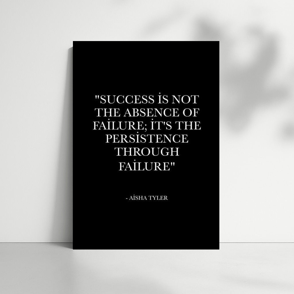 Success is not the absence of failure... poster by Aisha Tyler. Inspiration and motivation through wall art every day. See more from the collection: Inspirational & Motivational Quotes Art