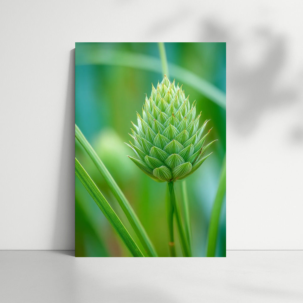 Dive into a world of green harmony with a poster depicting an exotic flower similar to an artichoke. Nature wall art! See more from the collection: Flowers Art
