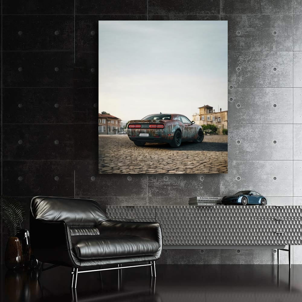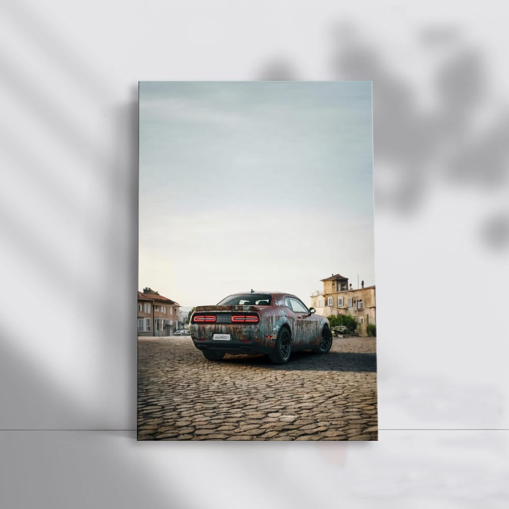 Bro, this painting is just fire! "Dodge Old City" on the poster is not just a car, it's a real beast on the wall. Wall art for those who live at full speed. Such art charges with energy and makes the garage a place of power. See more from the collection: Dodge Art
