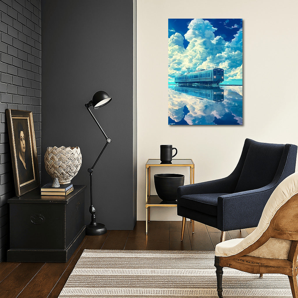 Dream Train Under the Sky Clouds. This poster will open a window to the world of fantasy and will win the hearts of lovers of wall art. See more from the collection: Anime & Manga genres Art