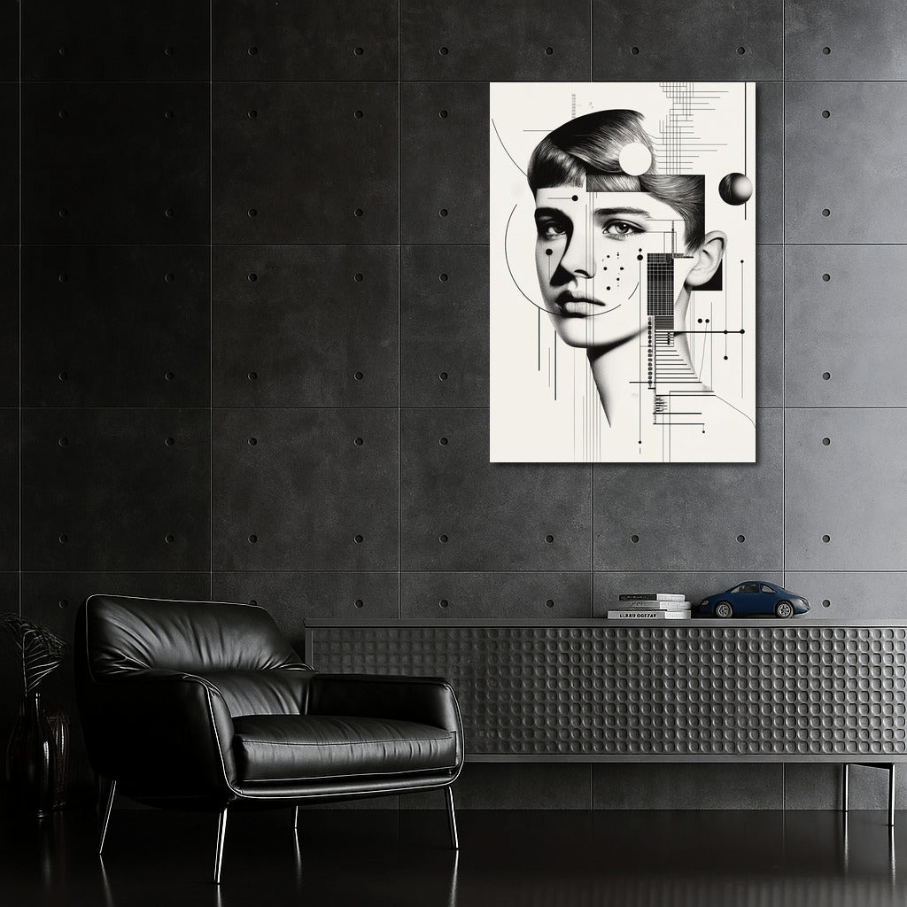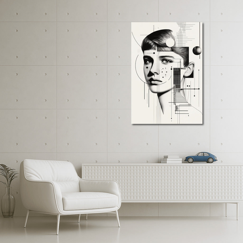 Modern wall art: abstract painting combining geometry and face. Stylish accent for your interior! See more from the collection: Abstract Art
