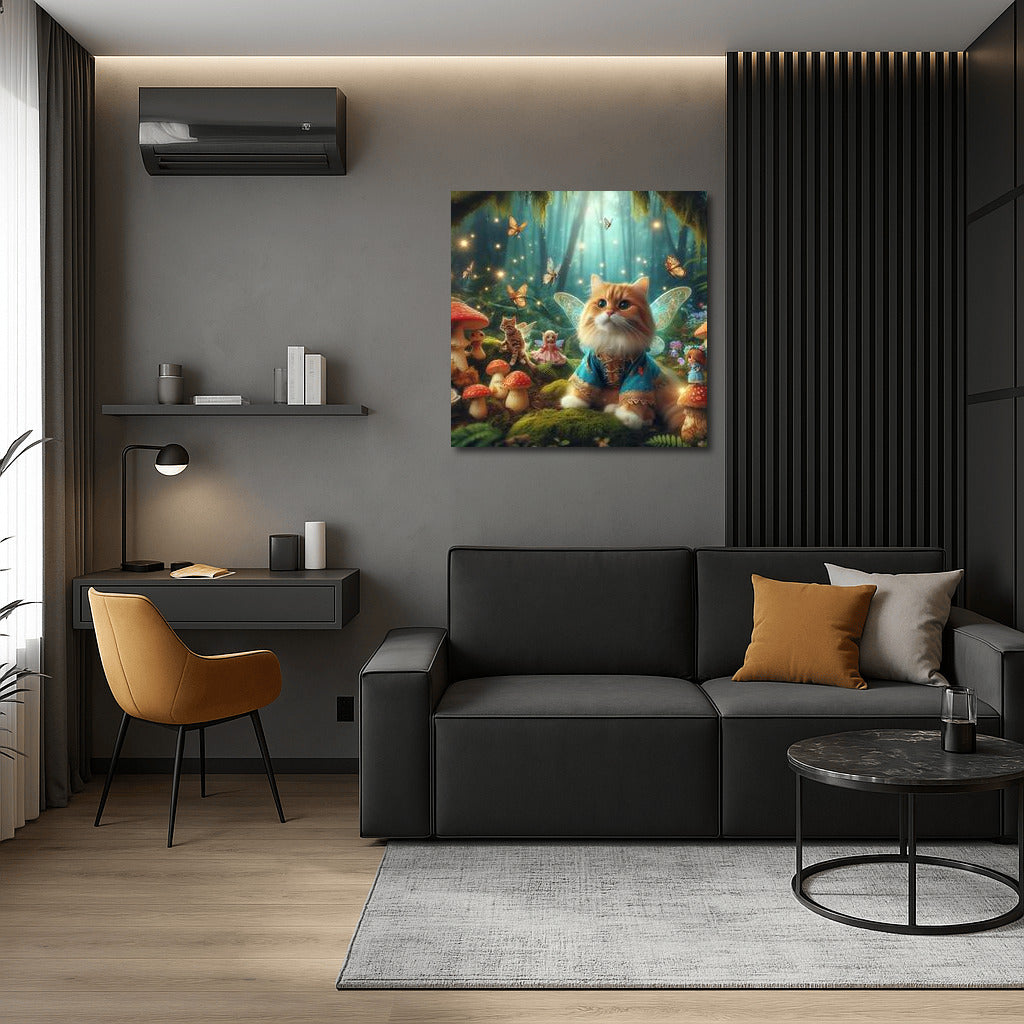 Fairy Cat in the Magic Forest: Fairytale Creatures and Mushrooms Wall Art