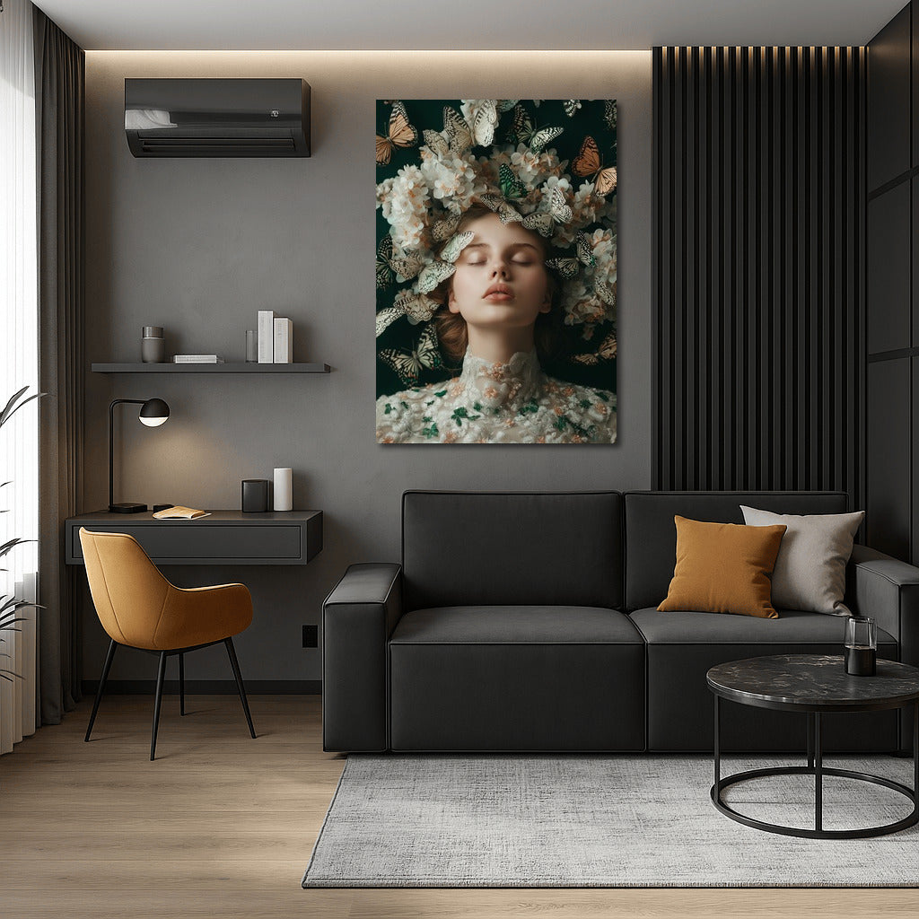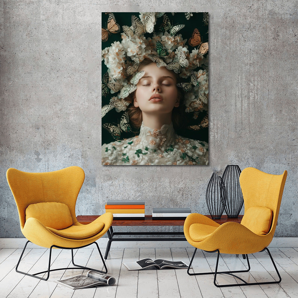 An ethereal painting of a dreamy figure surrounded by butterflies and flowers will bring your wall art to life with the magic of nature. See more from the collection: Mixed Wall Art