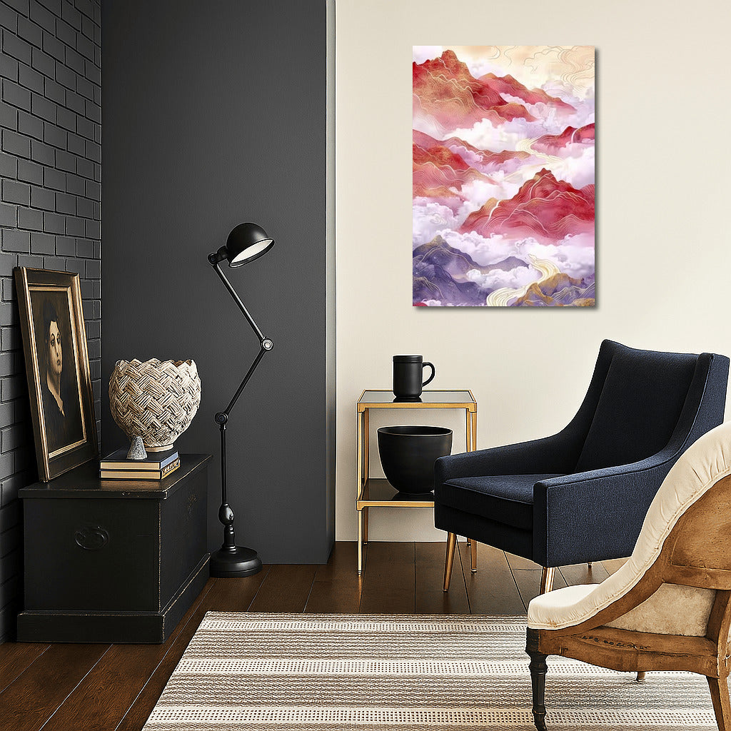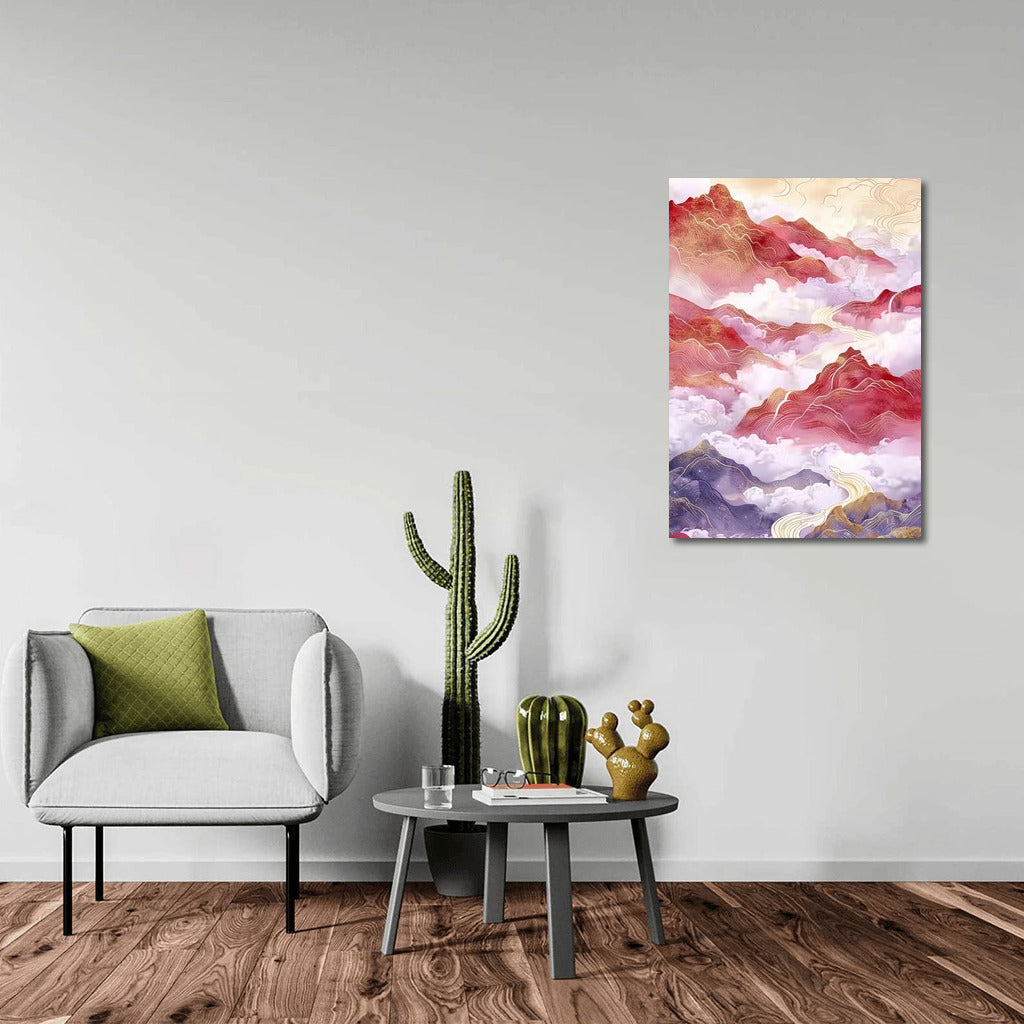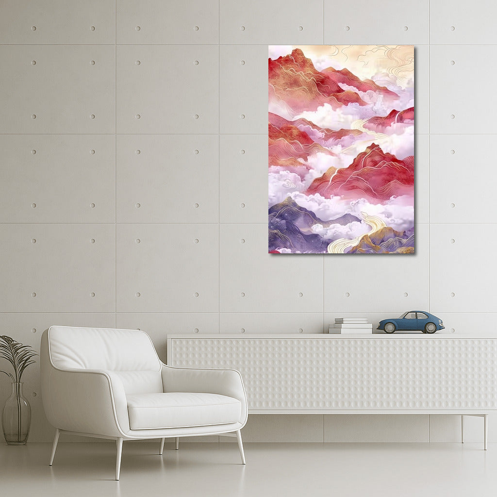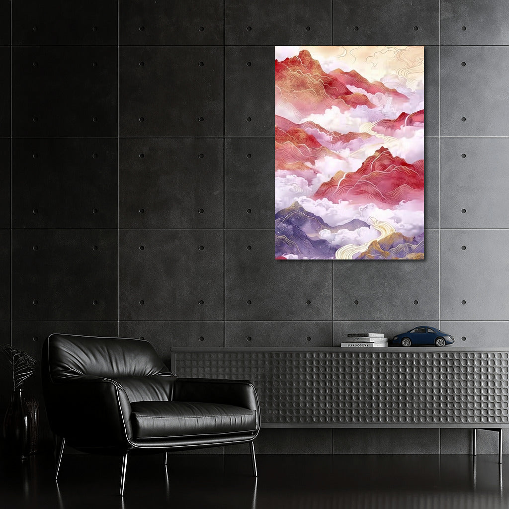 A dreamy painting of magical mountains in the clouds. This poster will add charm and magic to your interior wall art. See more from the collection: Mixed Wall Art