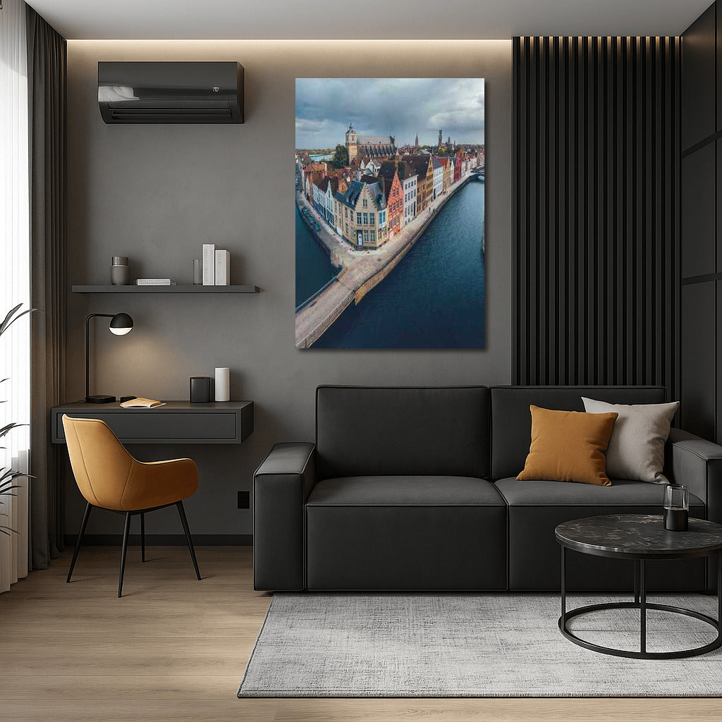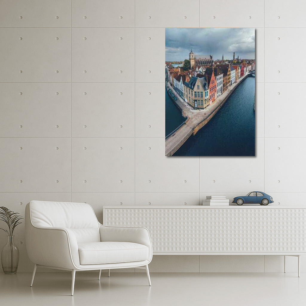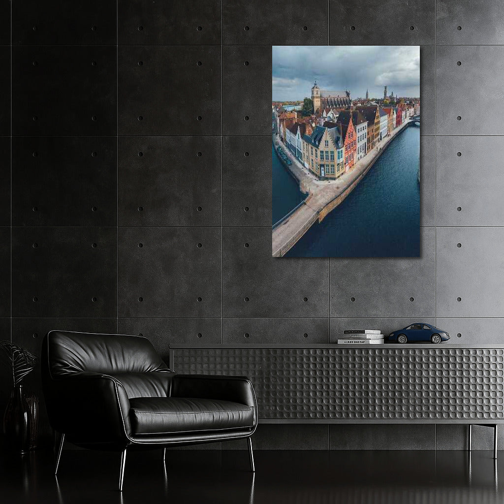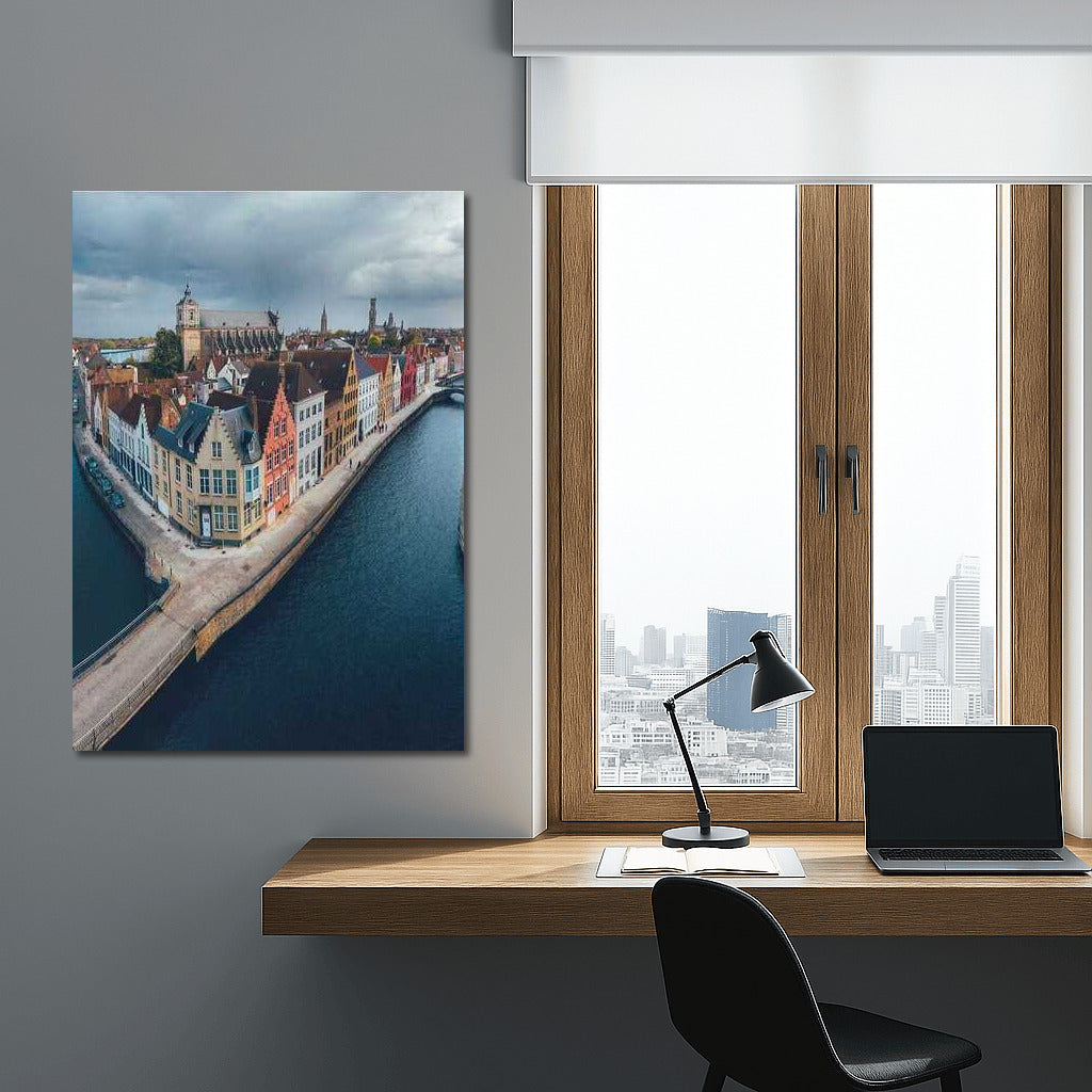 The charm of Belgium in architectural fairy tales on the bend of the canal. The painting will transfer the coziness of the ancient city to your walls. See more from the collection: Belgium Art