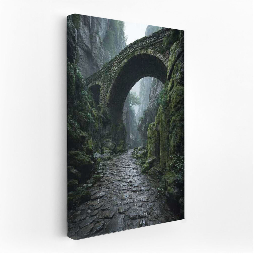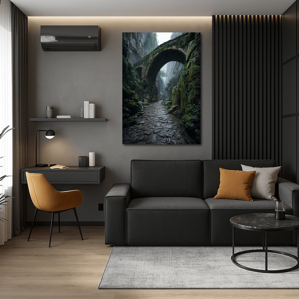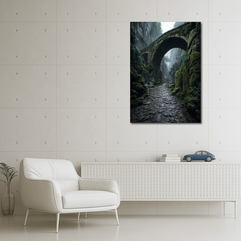 An architectural painting with a bridge that immerses you in a fairytale atmosphere. Turn your walls into a mysterious adventure. See more from the collection: Architectural Art