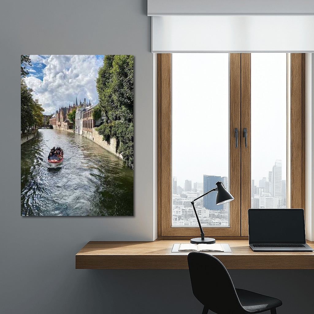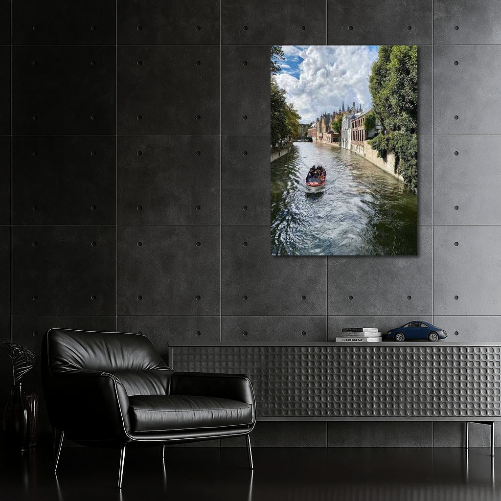 The poster takes you to the fairytale Bruges: paintingsque canals, gothic architecture. Touch the charm of Belgium in your home. See more from the collection: Belgium Art