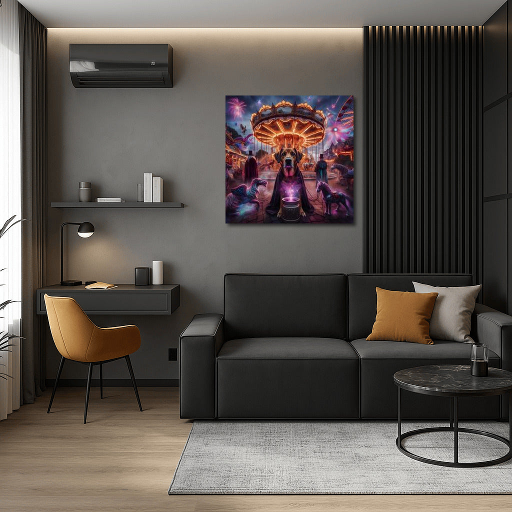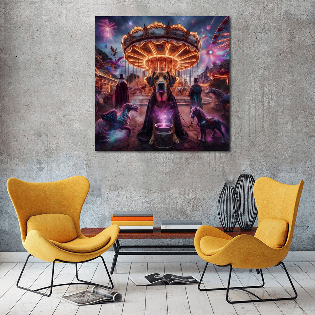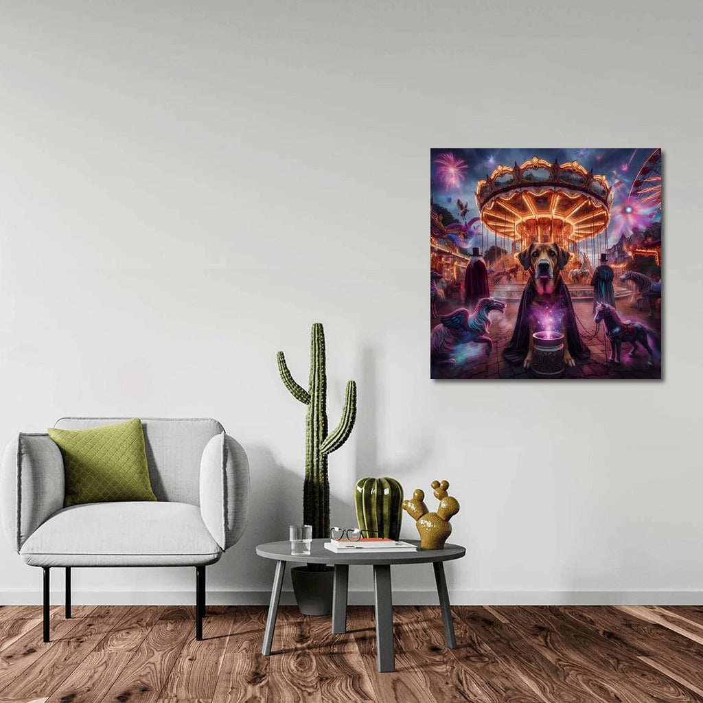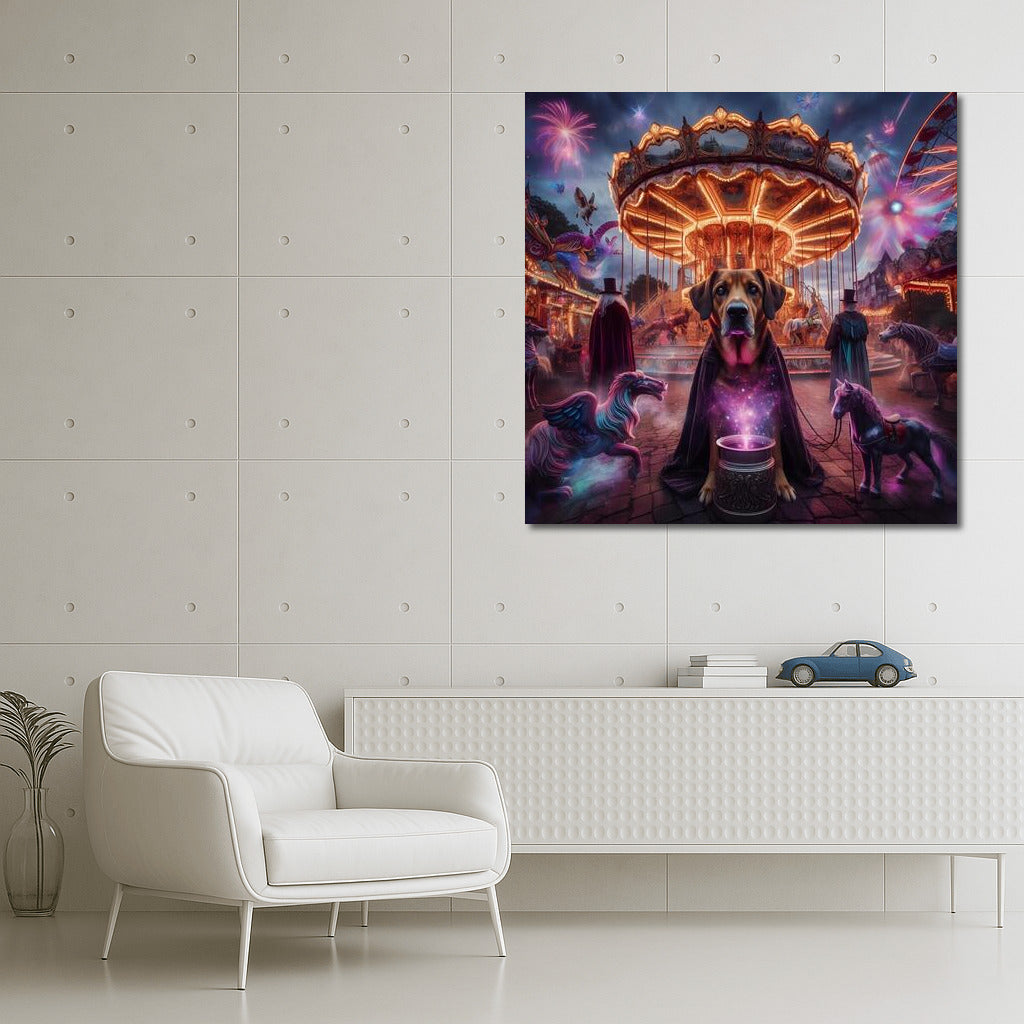 Dog at a Wonderland 2 poster: a fabulous dog in a magical amusement park. Wall art for dreamers and romantics! See more from the collection: Animals Art