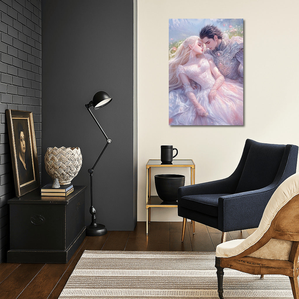 Elegant wall art with a dreamy couple in a fairytale atmosphere. Envelop your interior with magic and tenderness! See more from the collection: Love Art