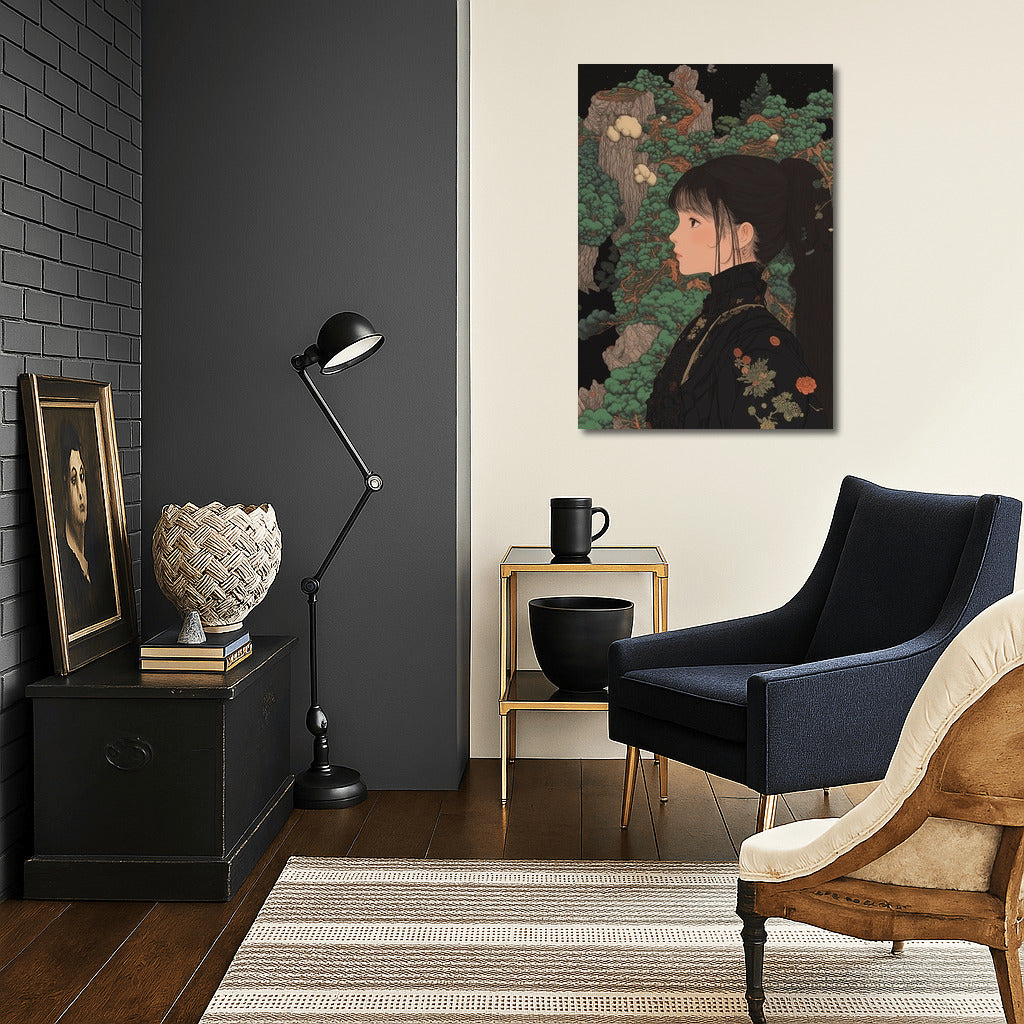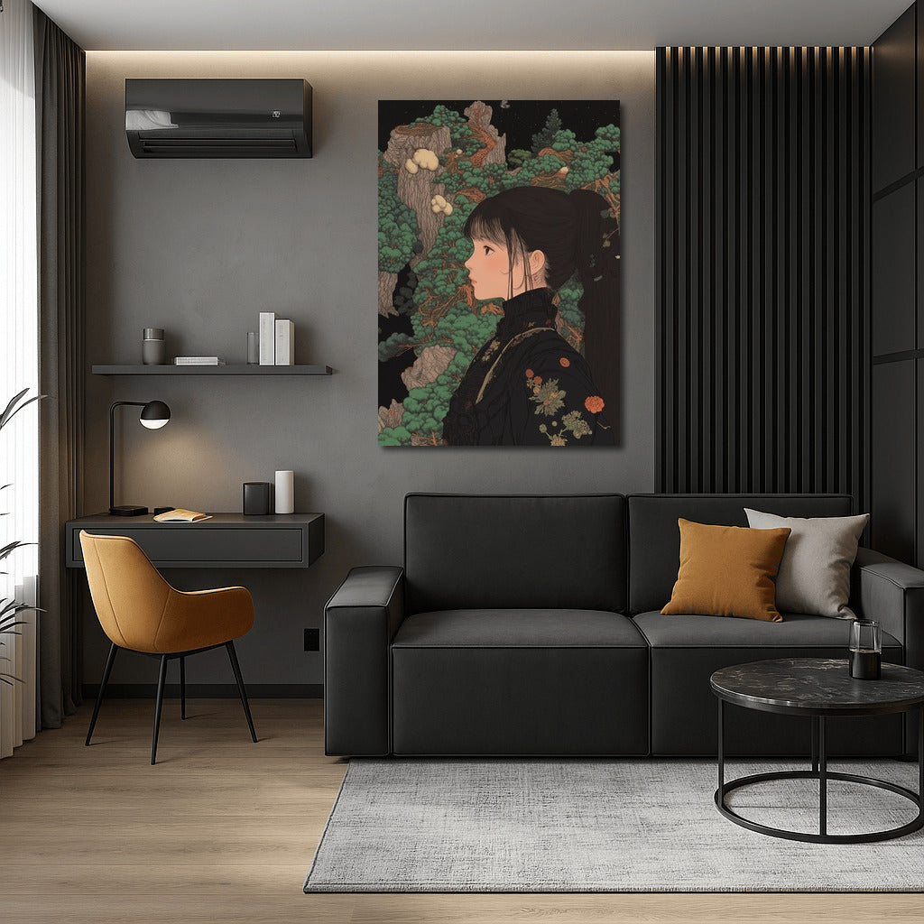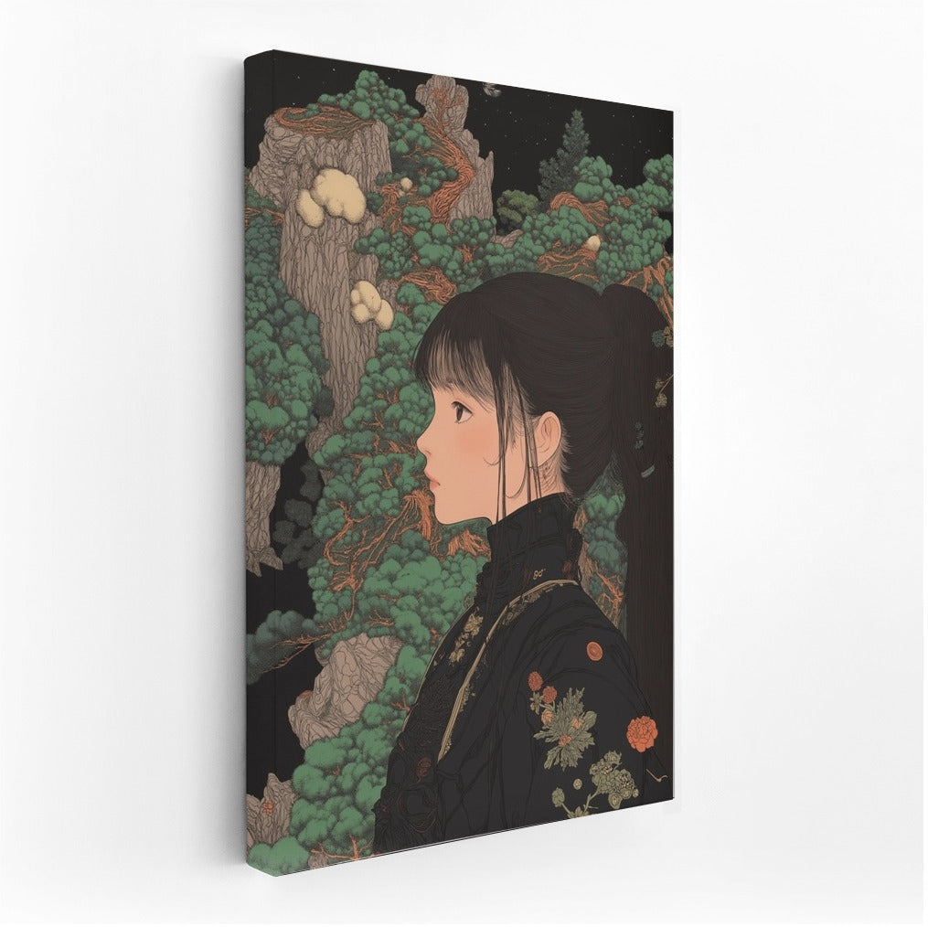 An unusual painting of a girl in a Japanese garden, where nature comes to life in detail. An ideal poster for a stylish interior. See more from the collection: Anime & Manga genres Art