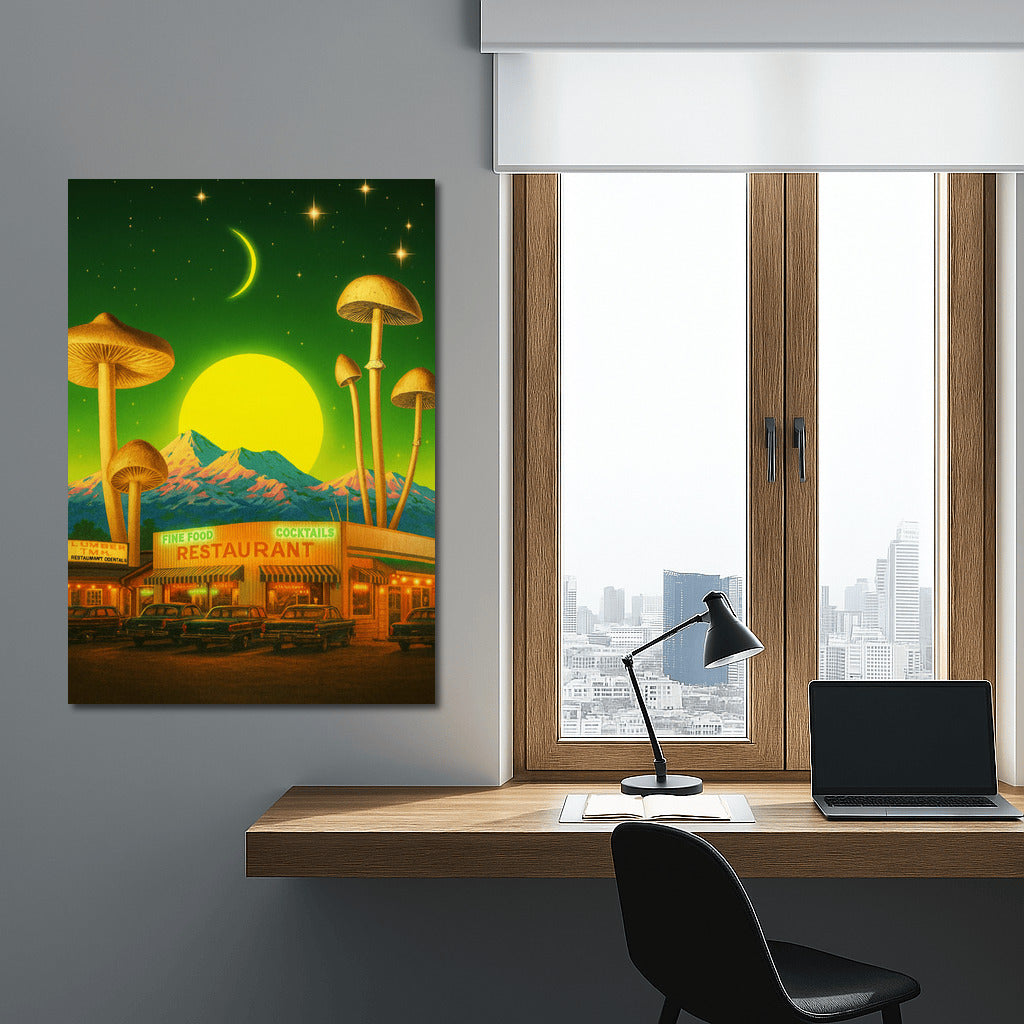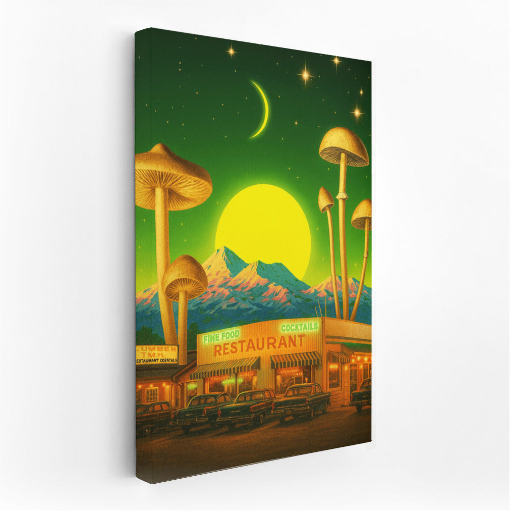 Immerse yourself in the world of Trippy: fairytale mushrooms, starry nights and retro cars come to life in this exciting poster. See more from the collection: Trippy & Psychedelic Art