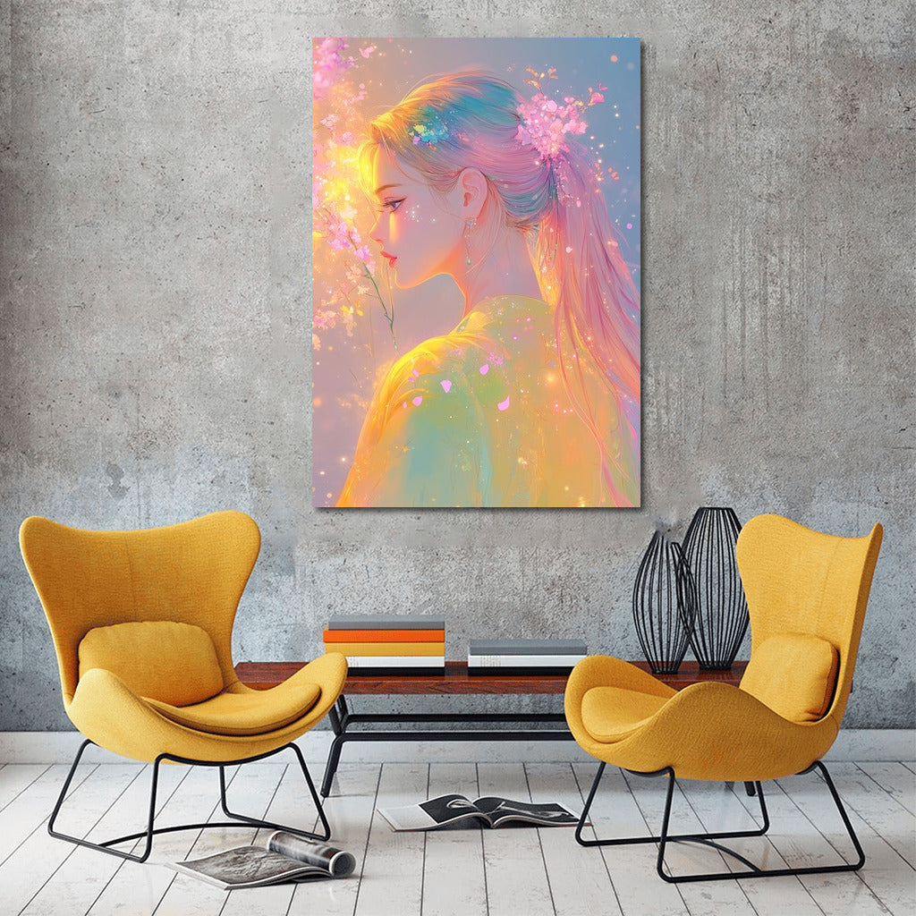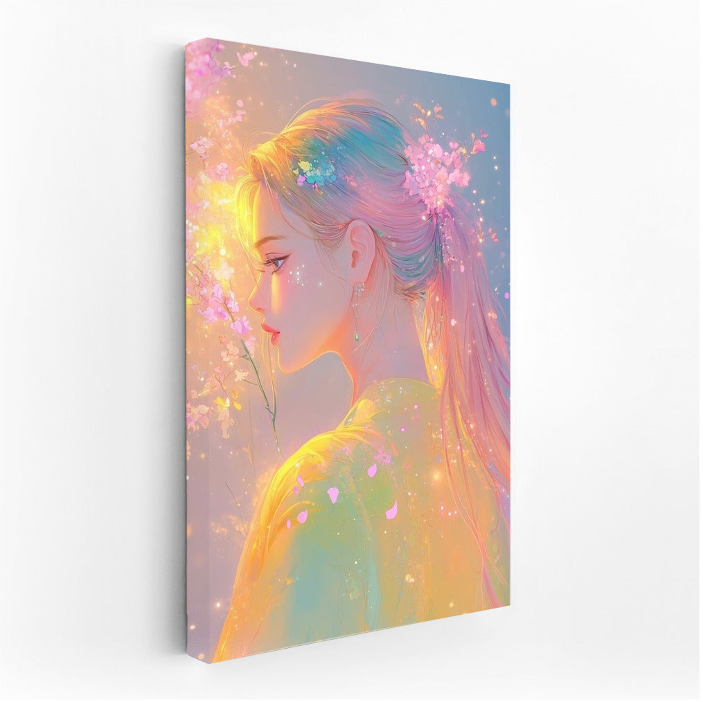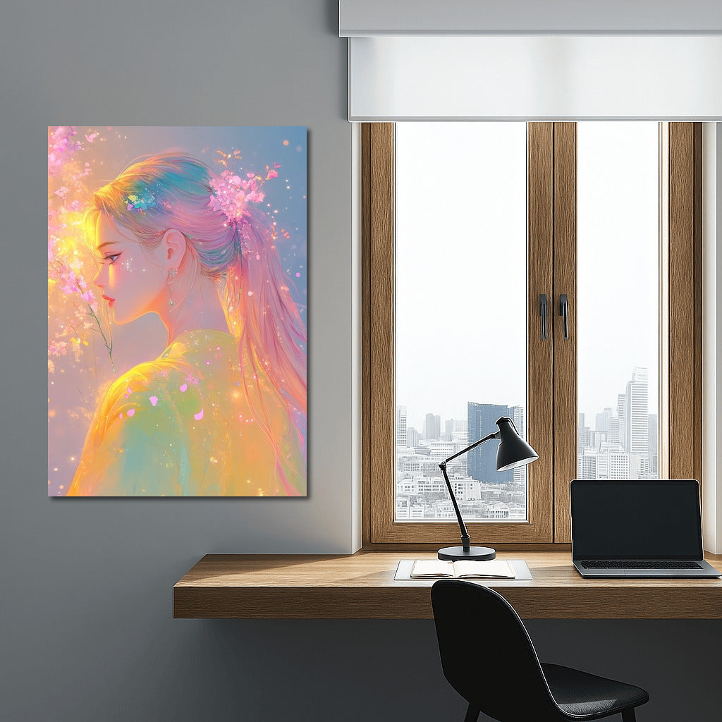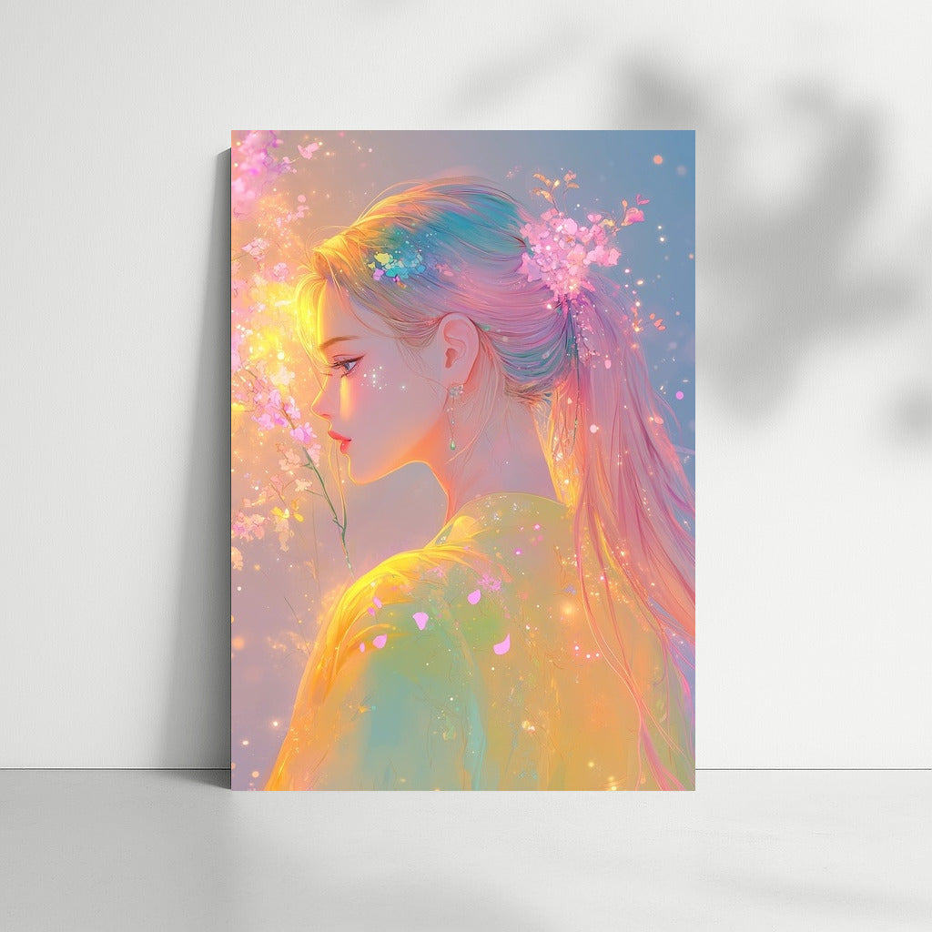 The magic of spring comes alive on this poster. Delicate colors and flowers create an atmosphere of dreams and fairy tales. Wall art for the soul. See more from the collection: Mixed Wall Art