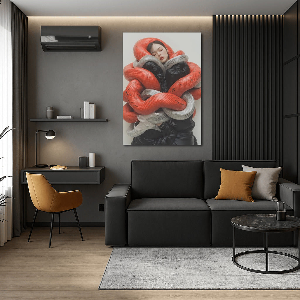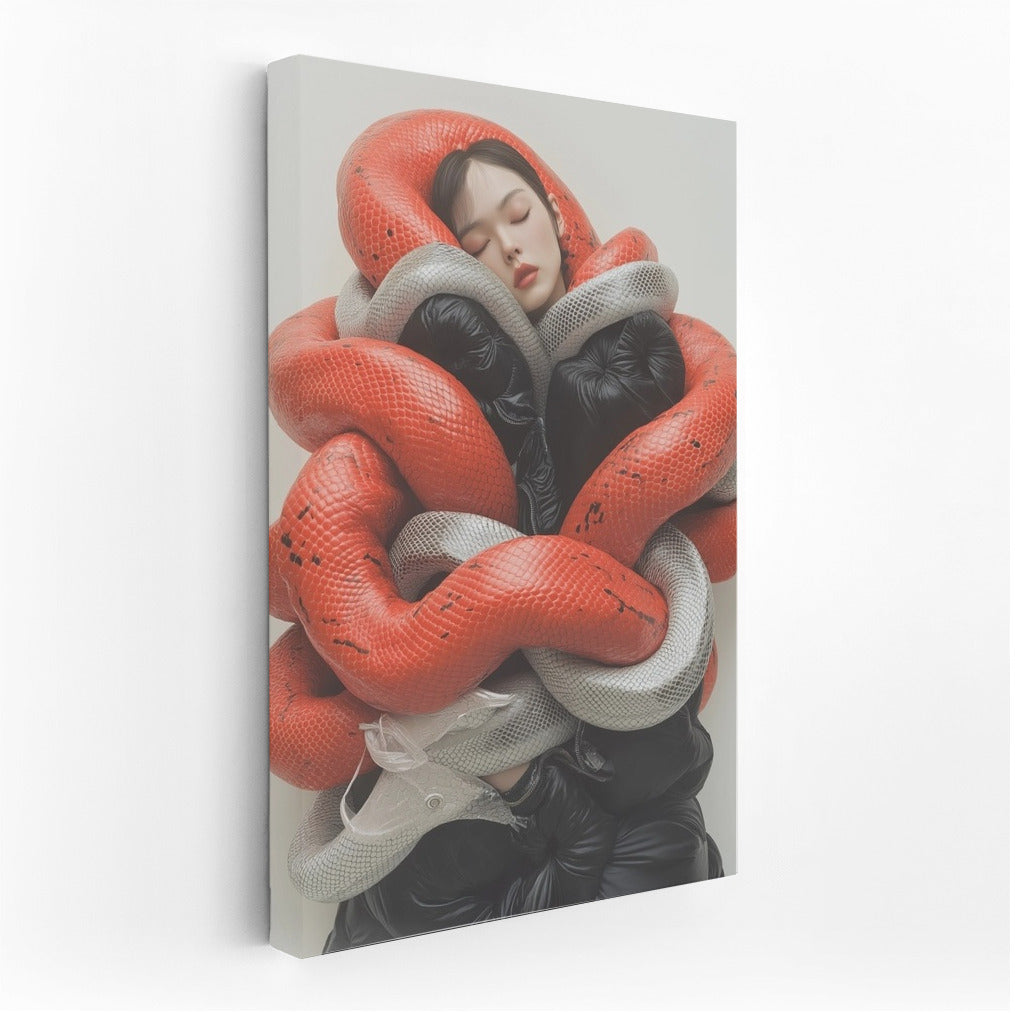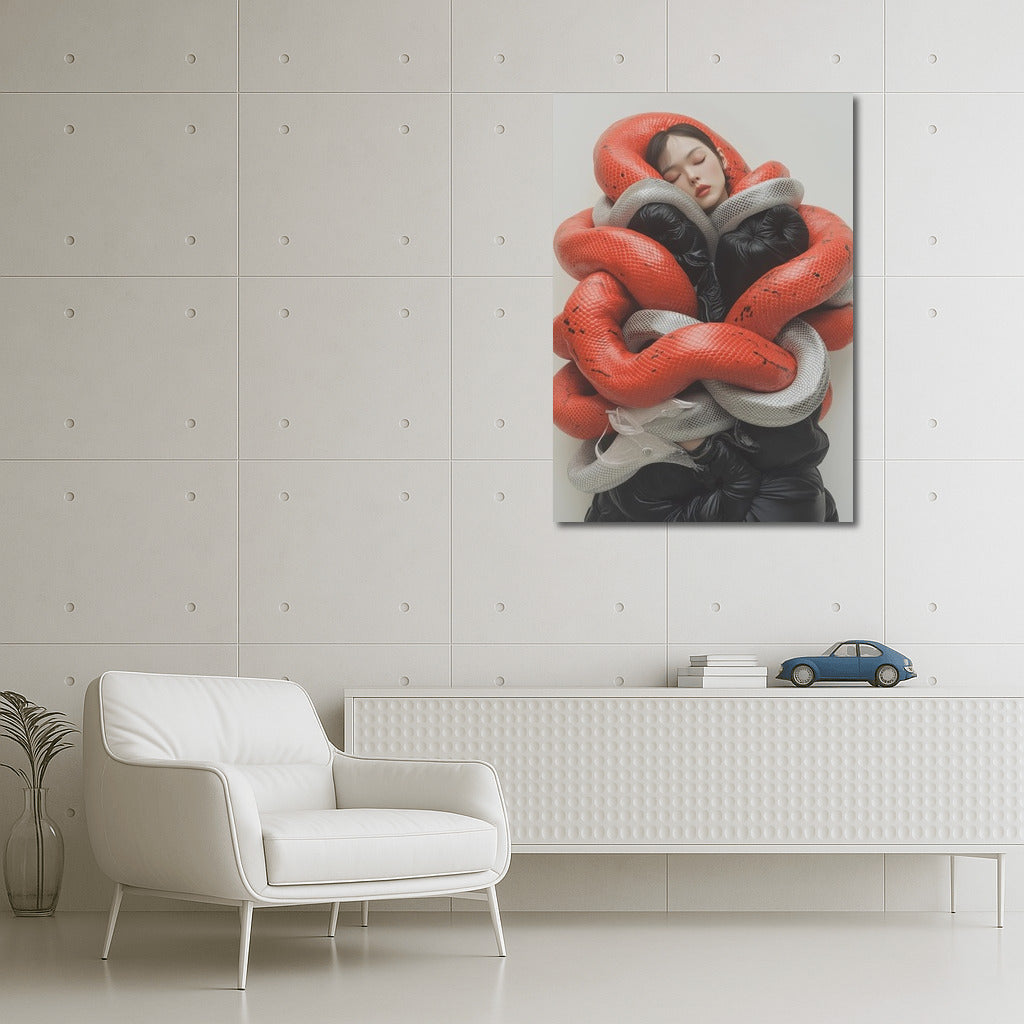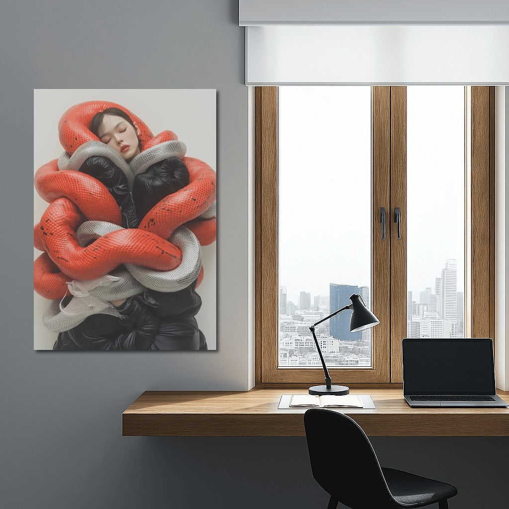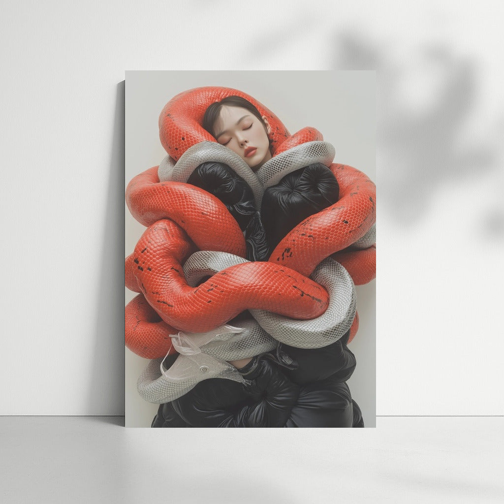An elegant painting of a girl caught in vivid fantasies. A poster that embodies mysterious wall art and modern aesthetics. See more from the collection: Mixed Wall Art