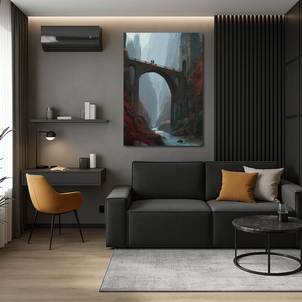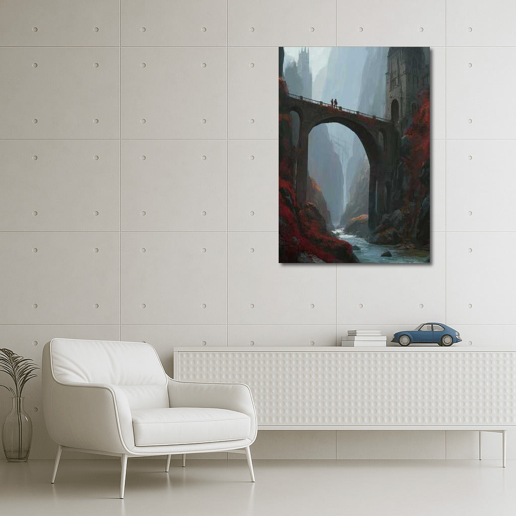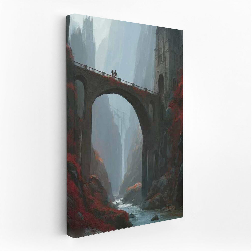Fantasy Architectural Bridge: Majestic Arch Between Rocks Wall Art