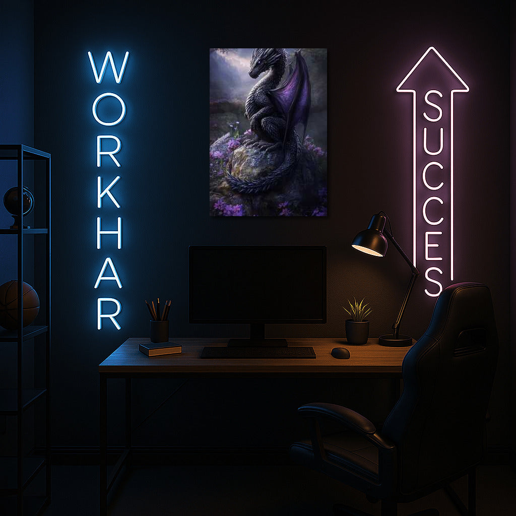 Fantasy poster: a majestic dragon reigning on a rock among flowers will enliven your walls with magic and mystery. See more from the collection: Fantasy Art