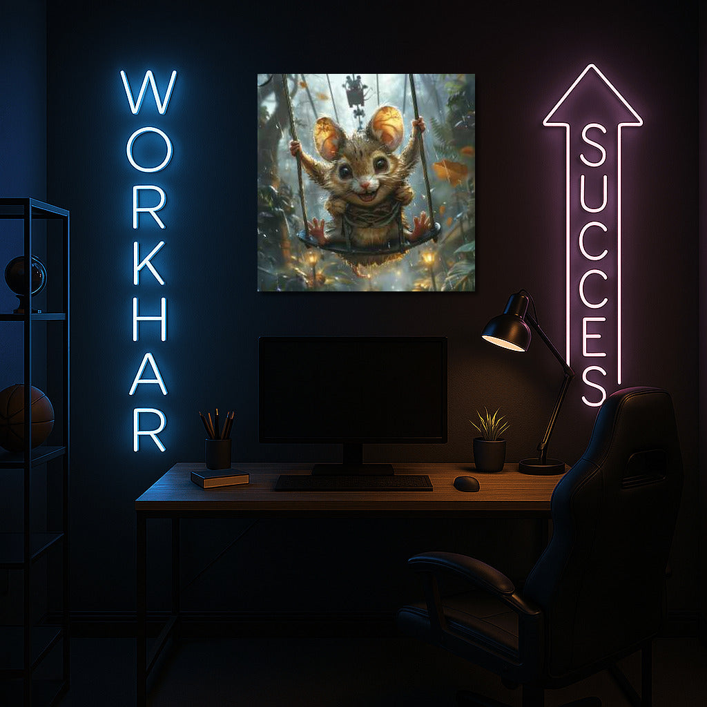 Dive into a fantasy world with this adorable painting of a cute mouse floating on a swing, refreshing your wall art. See more from the collection: Fantasy Art
