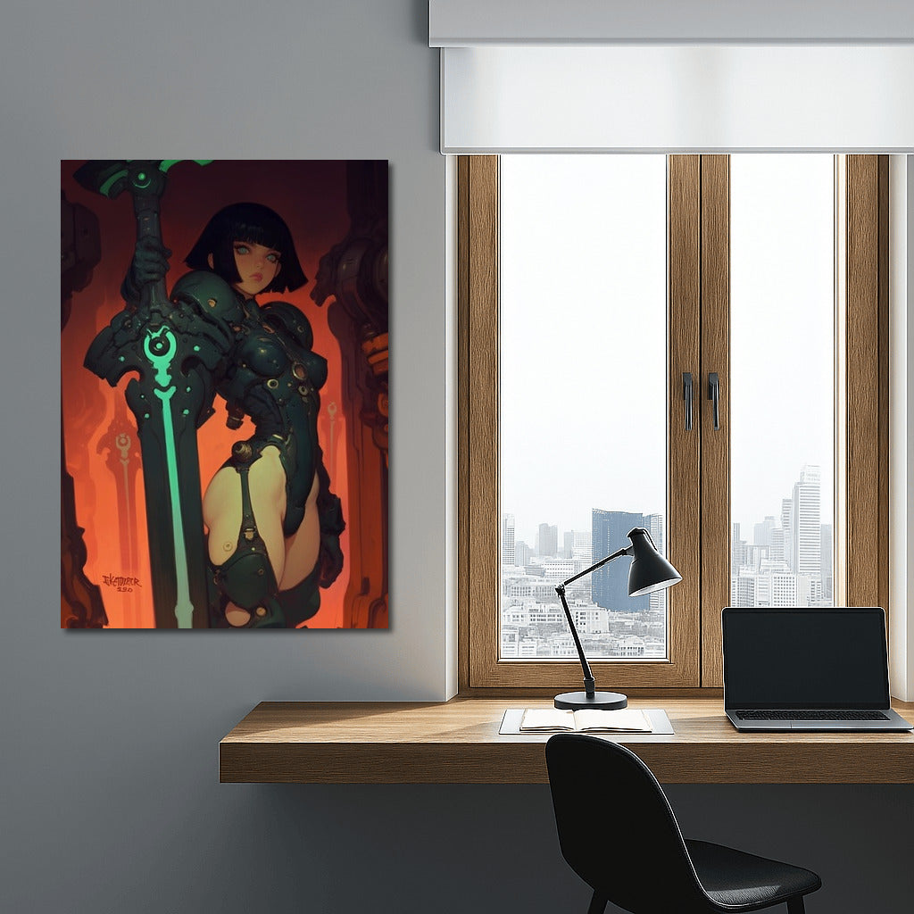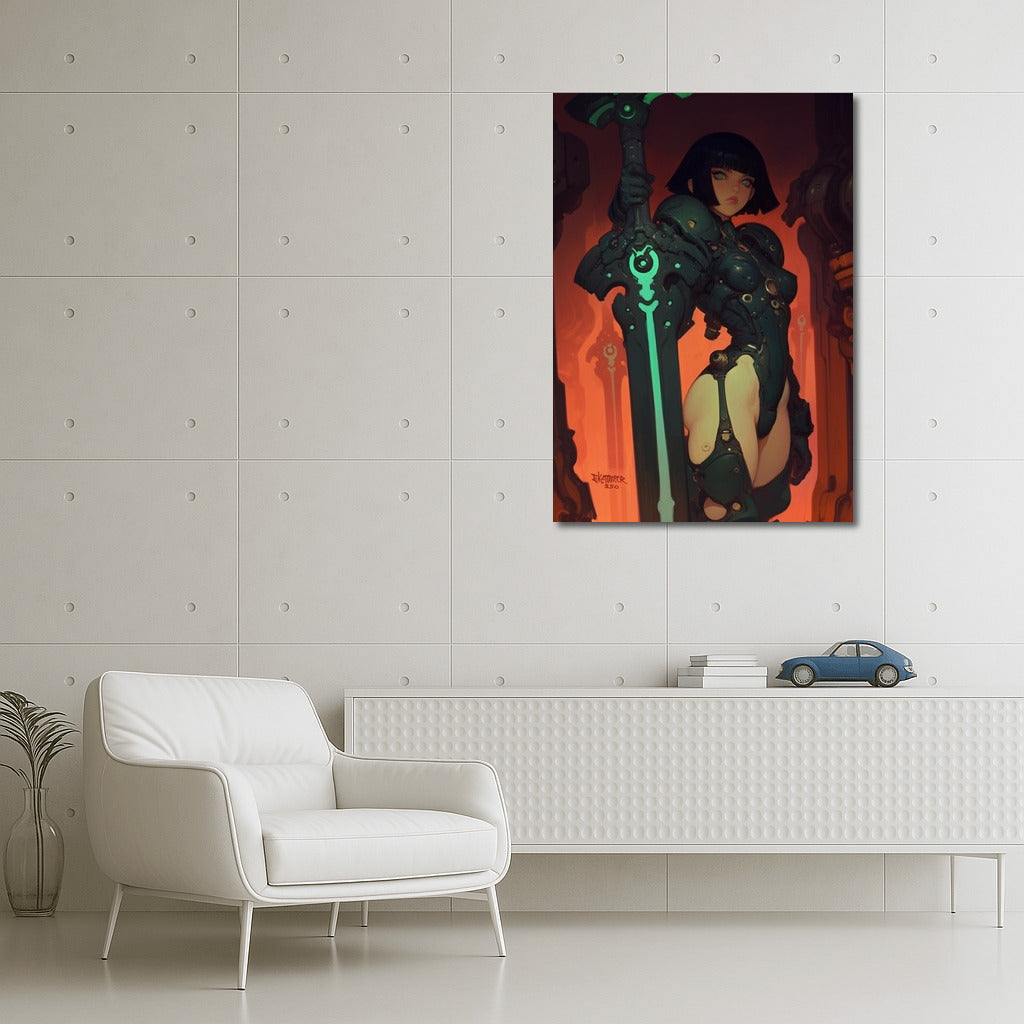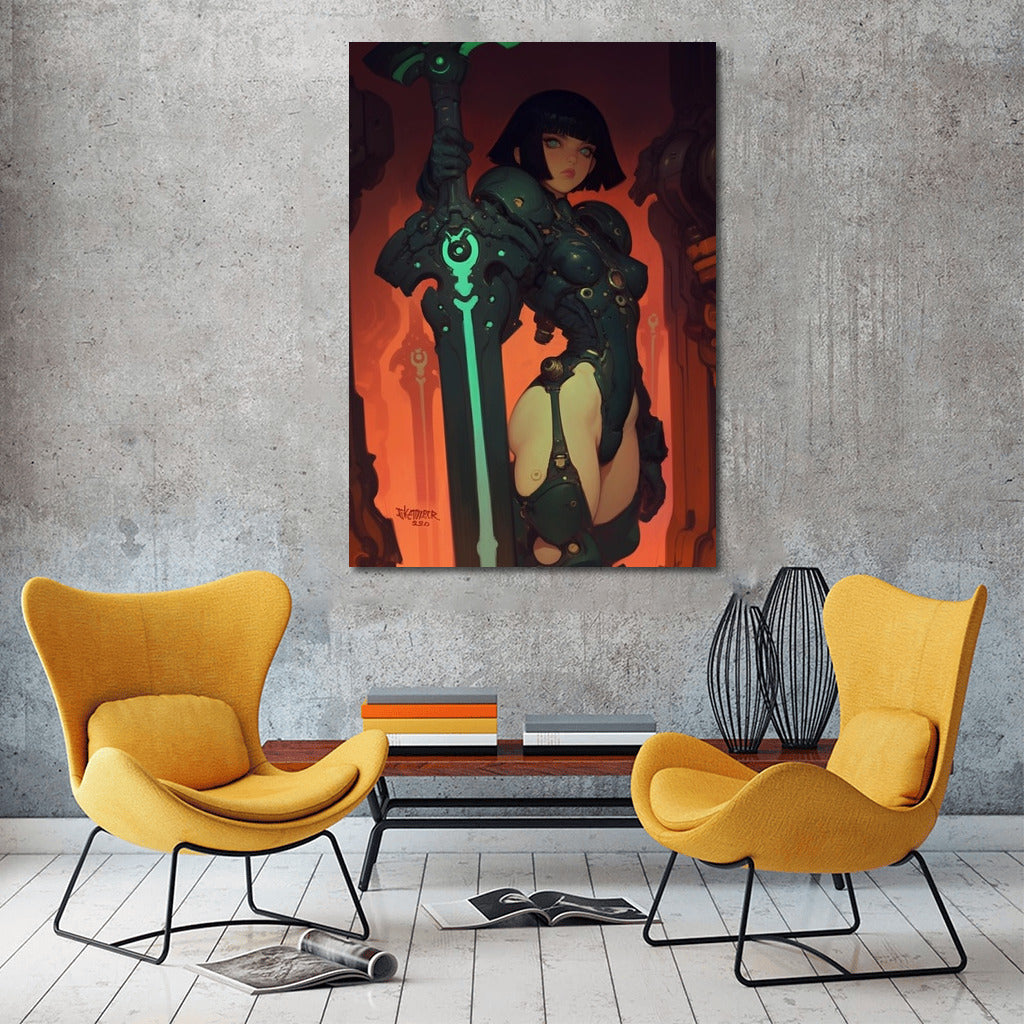 Impressive painting: fantasy wall art with warrior in armor holding a sword. Dive into the world of fantasy! See more from the collection: Anime & Manga genres Art