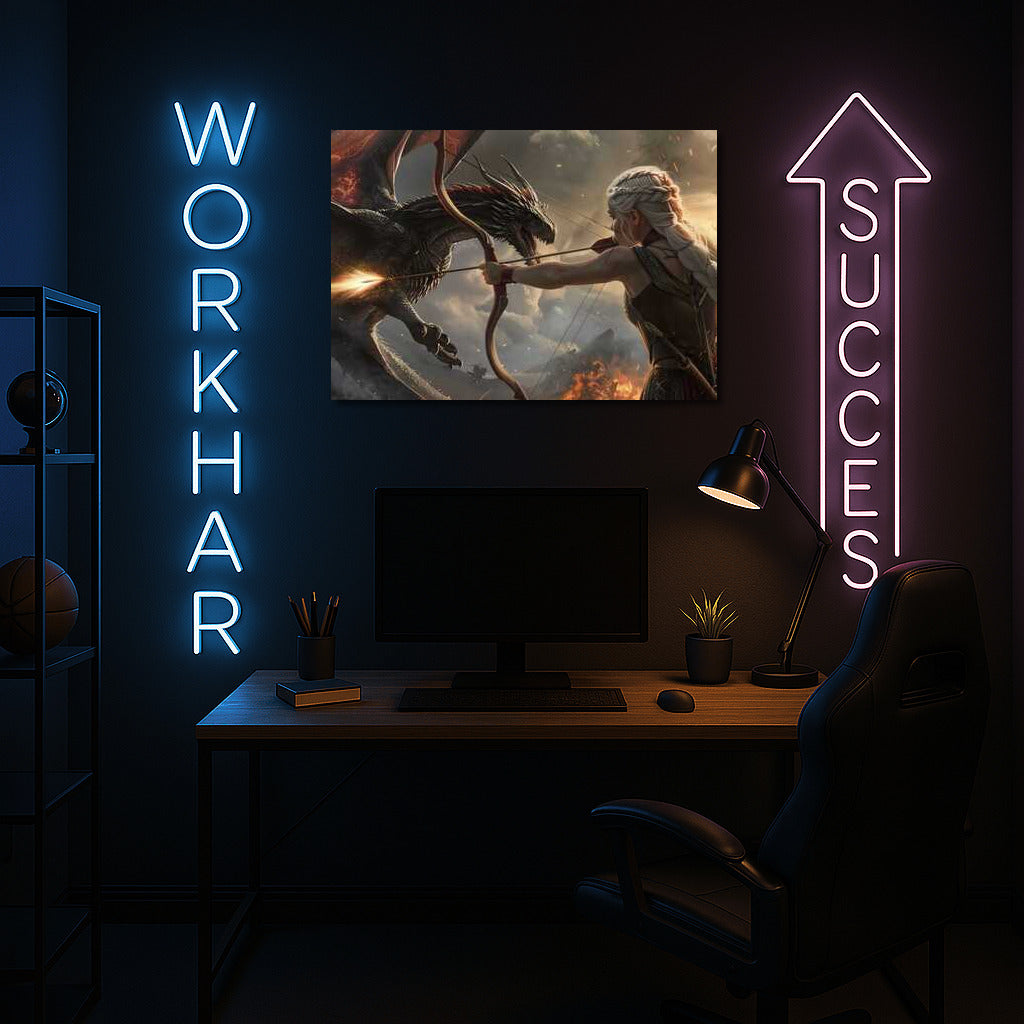 Dive into a fantasy world with a poster of a brave hero facing a dragon. An epic moment for your wall art! See more from the collection: Fantasy Art