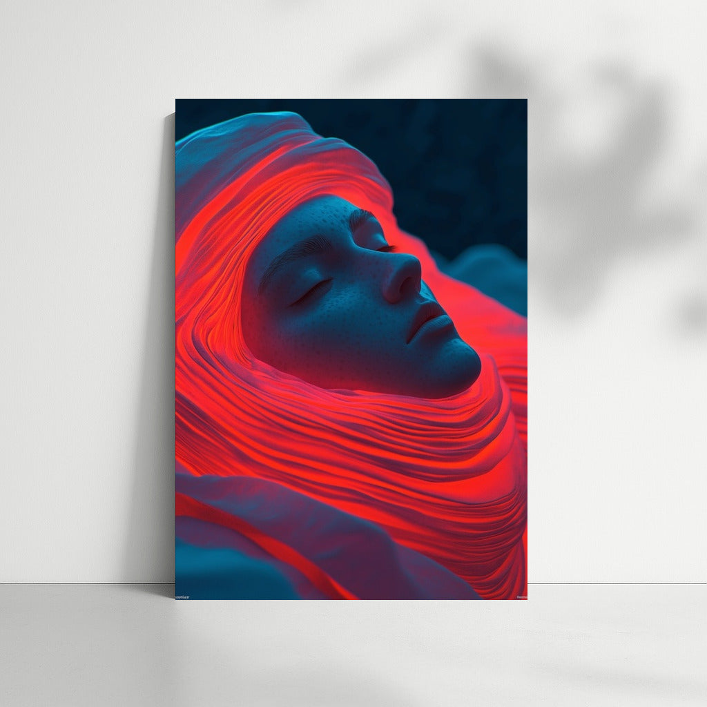 Glowing Fantasy: A poster featuring an ethereal figure in luminous fabrics. Unique wall art that transforms space. See more from the collection: Mixed Wall Art