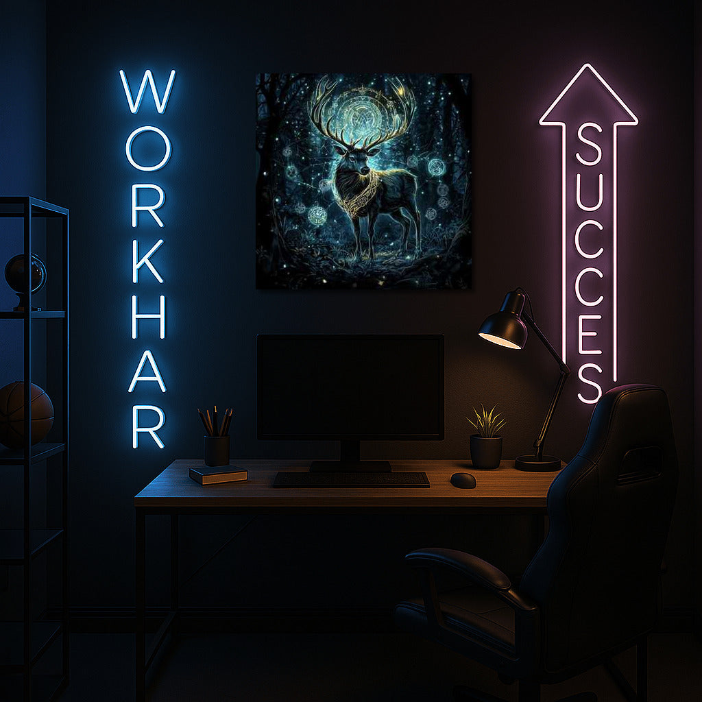 Immerse yourself in the magic: a fantasy poster with a majestic deer surrounded by the light of magic. Wall art that brings dreams to life. See more from the collection: Fantasy Art