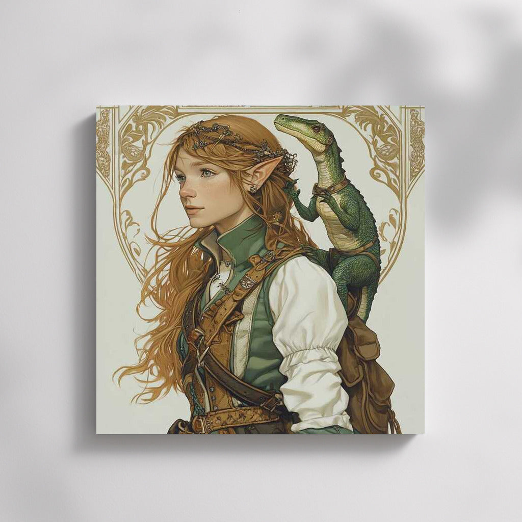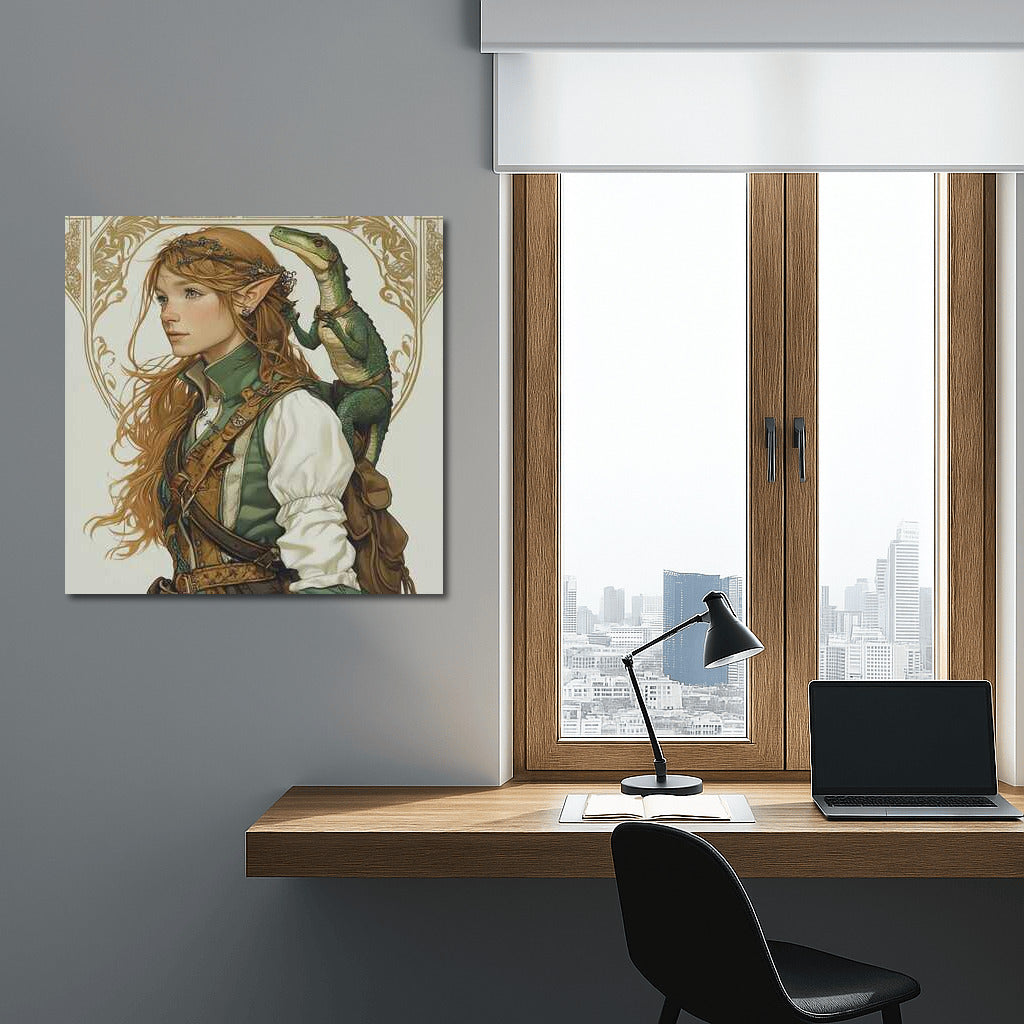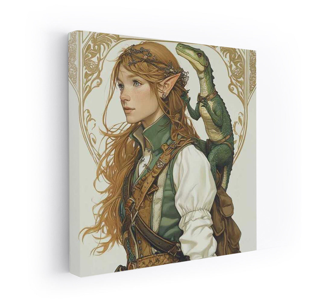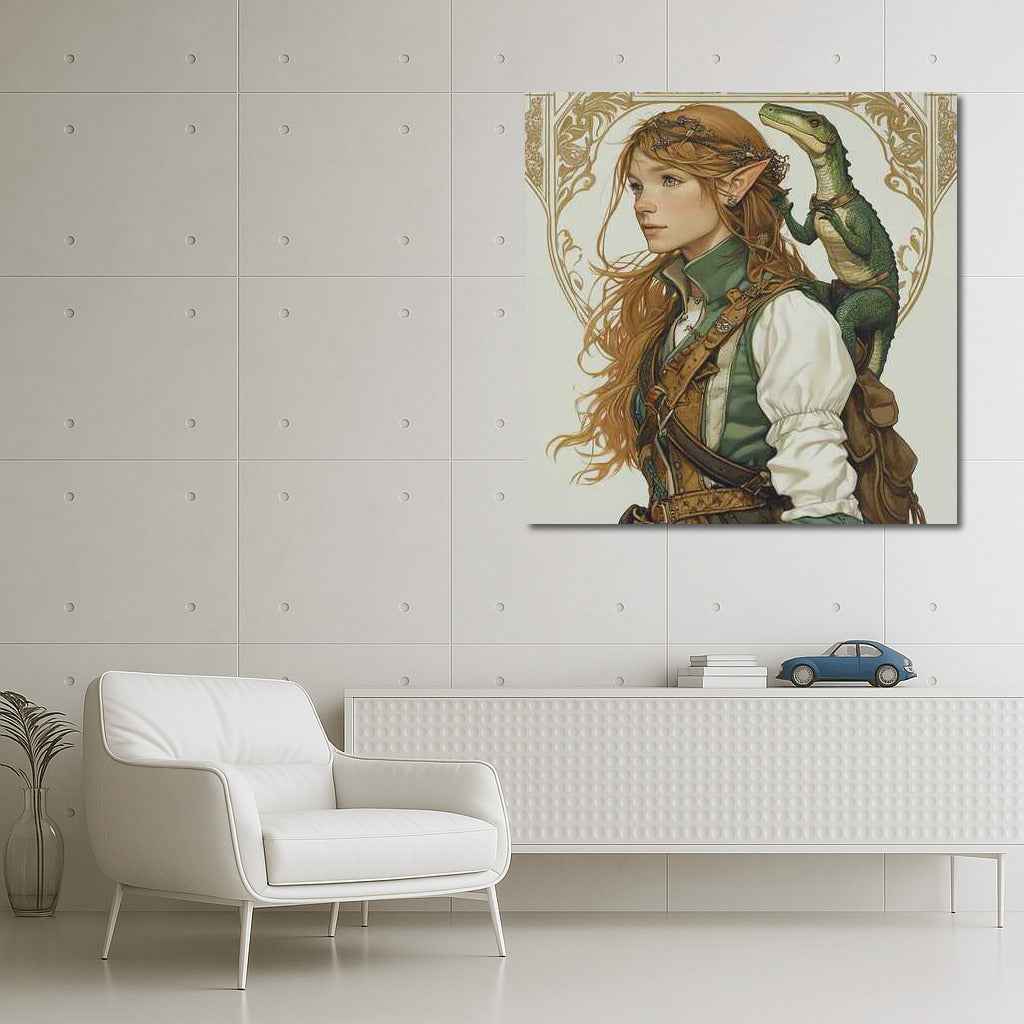 Fantastic wall art with a mysterious character and a lizard. Discover dream worlds with this exquisite poster! See more from the collection: Fantasy Art