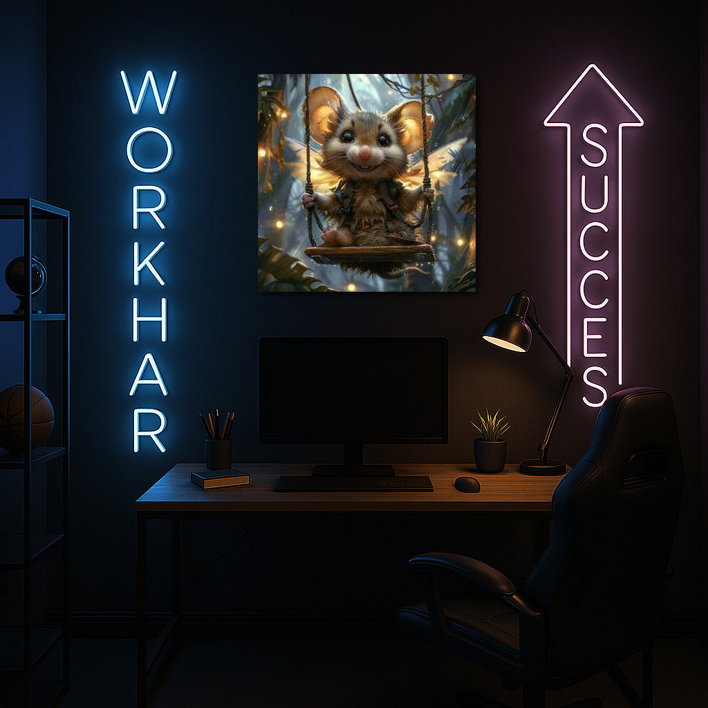 This fantasy poster features a cute mouse swinging on a swing in a fairytale forest, bringing magic and charm to the walls. See more from the collection: Fantasy Art