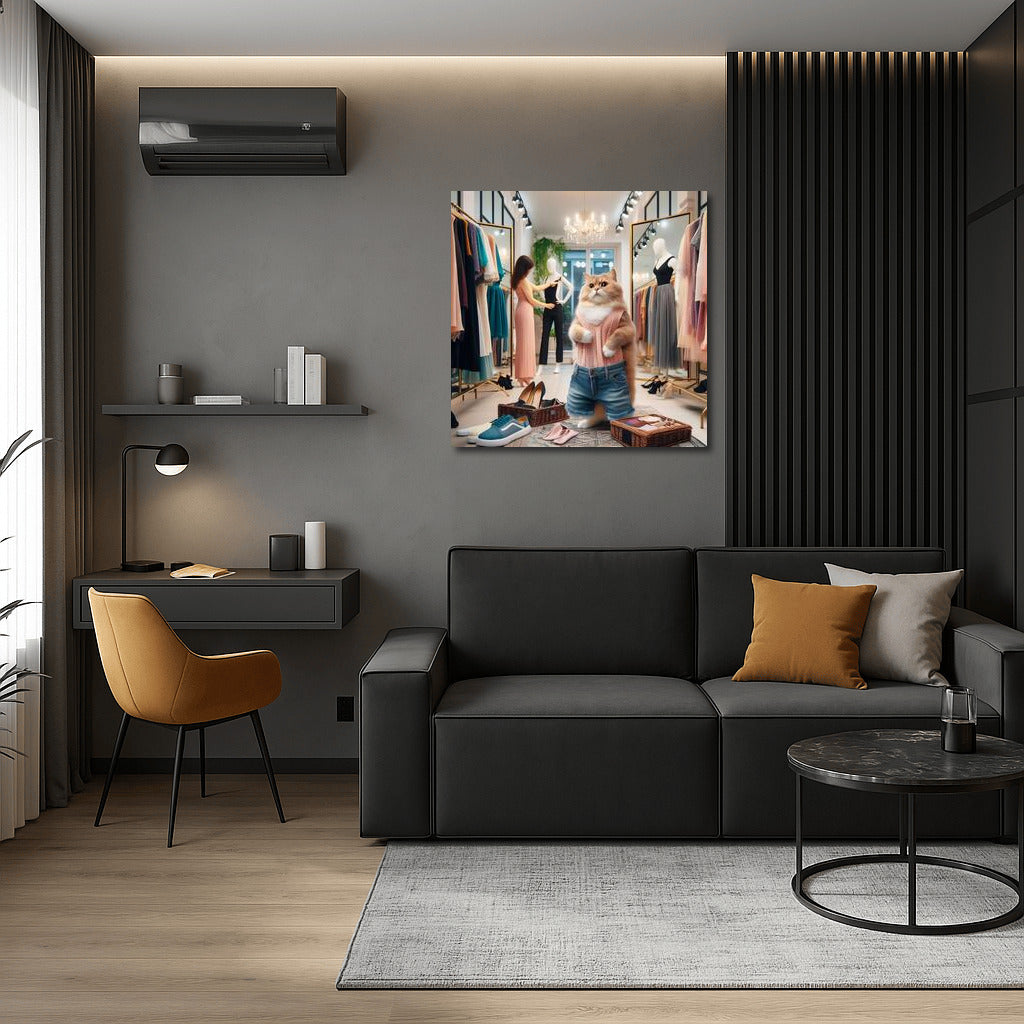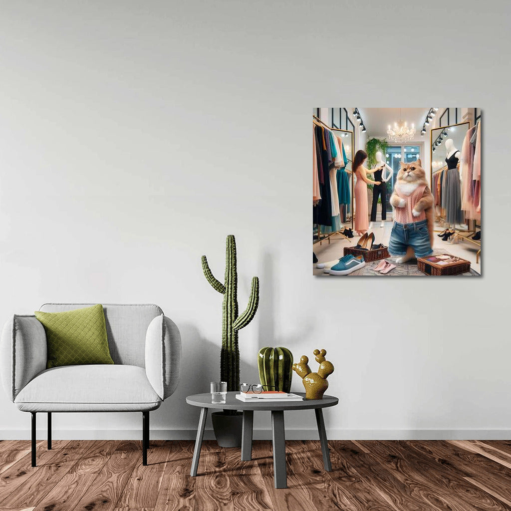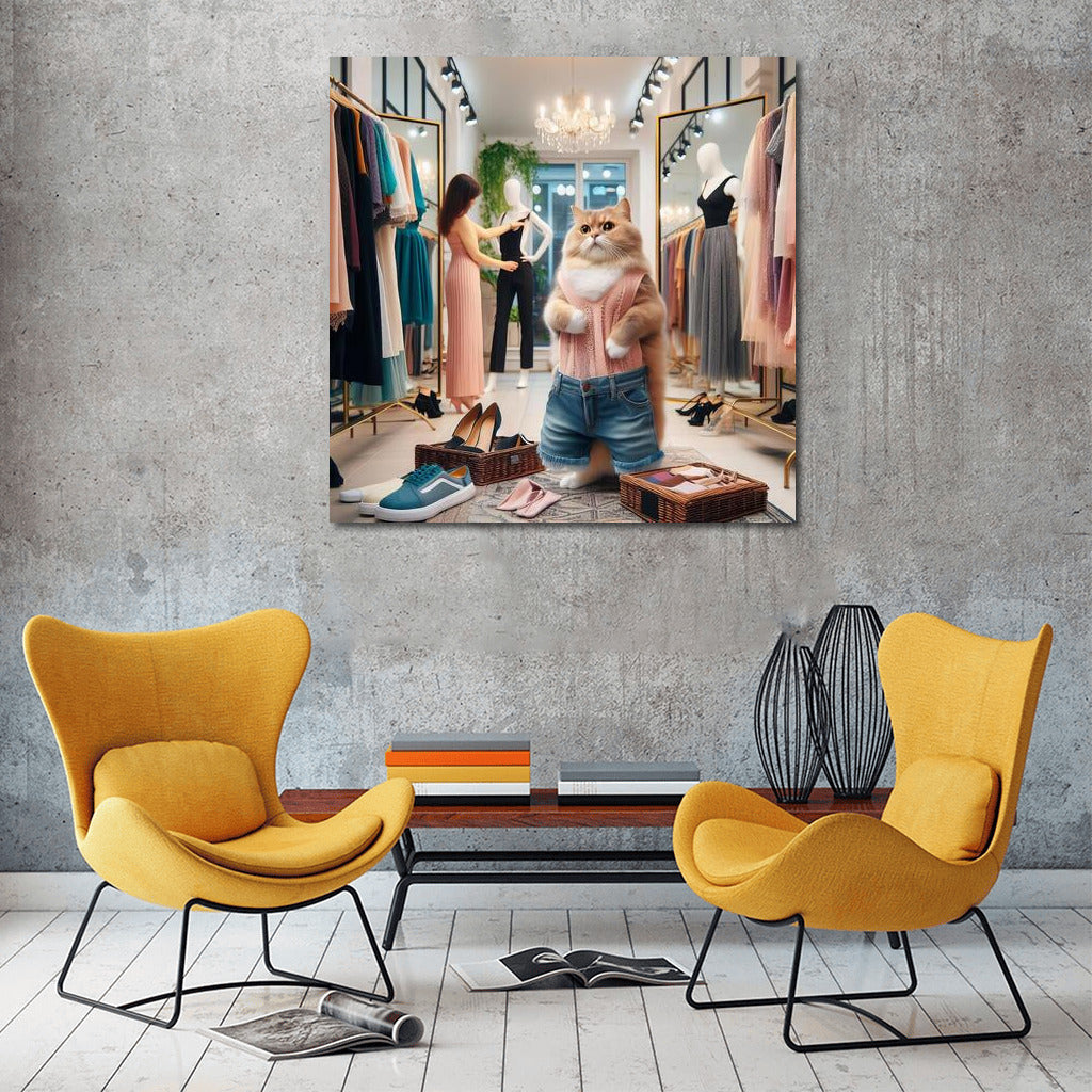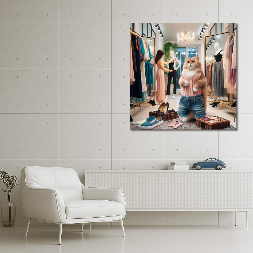 Fashionable Cat in the Boutique: Stylish Fittings Among the Mannequins Wall Art