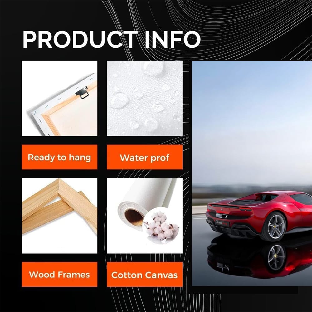 This Ferrari 296 GTB poster is a real find for speed and style lovers. The bright red beauty on canvas is like a challenge to the world. Wall art for those who know a lot about adrenaline and horsepower. A painting that will give you goosebumps. See more from the collection: Ferrari 296 GTB Art