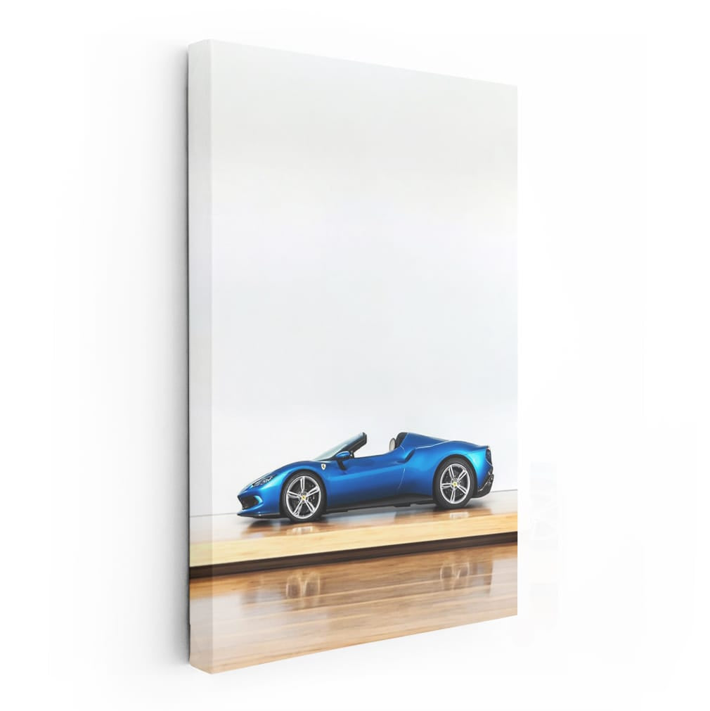 This painting is a blast for car lovers, a Ferrari 296 GTS on a blue background with wooden parquet. The poster screams speed, power and style, conveying the spirit of daring. Wall art for those who live on the edge. Hang it up and enjoy! See more from the collection: Ferrari Art