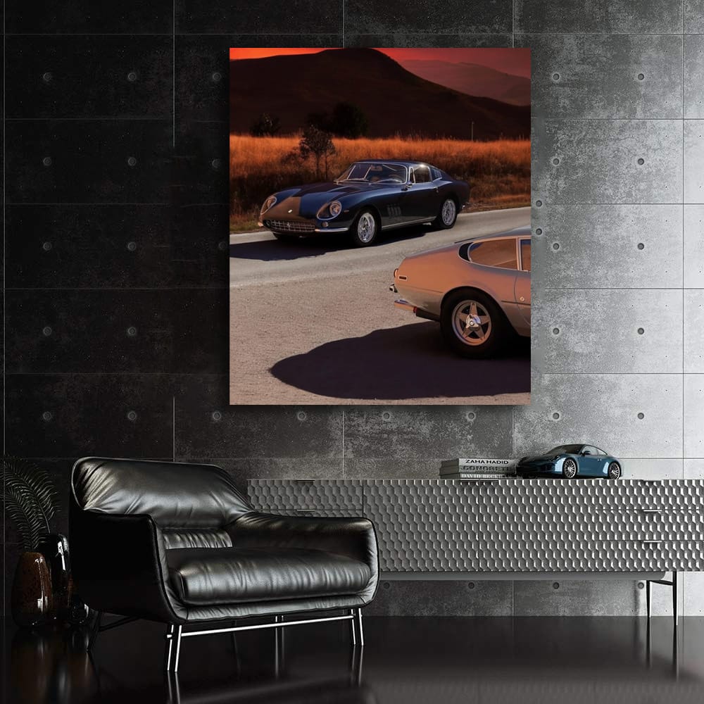 This painting is every car lover's dream. A poster of a Ferrari 365 GTB 4 in the wild is a treasure for any wall. Wall art for those who live for speed. This is not just a poster, it is a challenge for everyone who appreciates power and style. See more from the collection: Ferrari Art