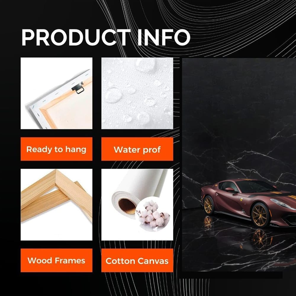 This poster is pure pleasure for petrolheads! Ferrari 812 Competizione on black marble - as if it were in your garage. Wall art for those who know a lot about speed and style. A painting that gets you going in half a turn and will add fire to any wall. See more from the collection: Ferrari 812 Superfast Art
