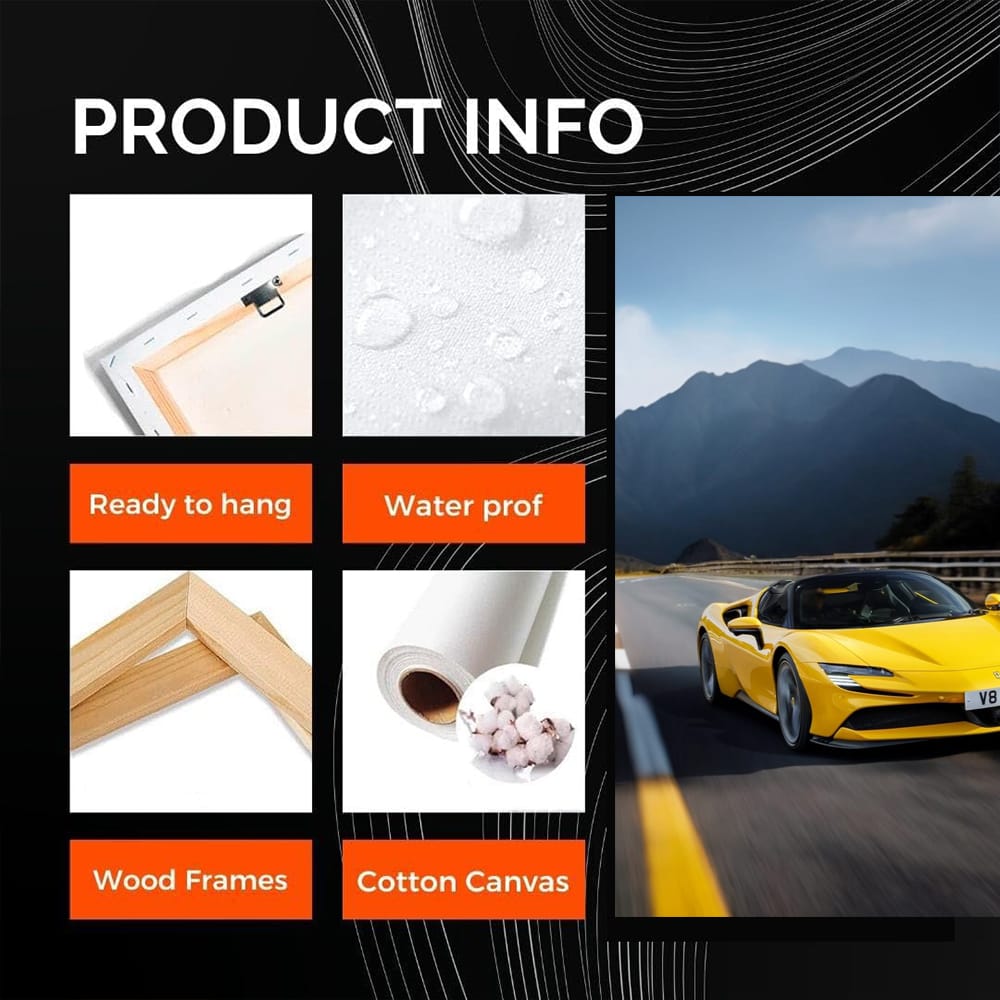 Imagine: you have a Ferrari poster hanging on your wall in the mountains. This is not just a painting, but a real wall art for true car enthusiasts. Looking at this masterpiece every day is like a dose of adrenaline, a reminder that life is speed and passion. See more from the collection: Ferrari Art