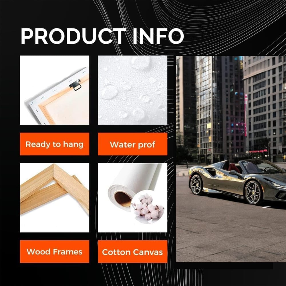 This painting is pure adrenaline on the wall. The Ferrari F8 Spider is racing through the cityscape and you can feel the roar of the engine even through the poster. This wall art is for those who are racers at heart, for those who live life at full speed. See more from the collection: Ferrari Art