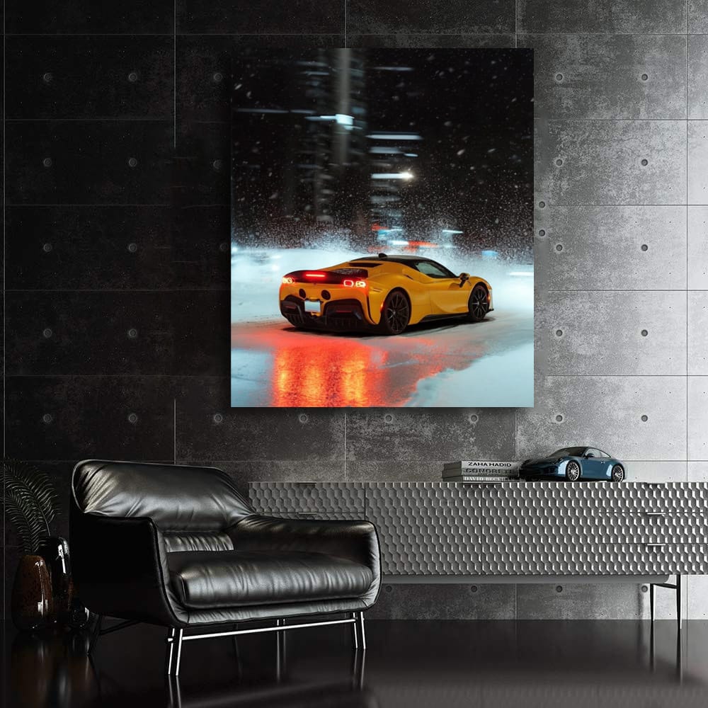 Hey bro, imagine a painting on your wall: a Ferrari racing through the snow at night. This is not just a poster - this is pure adrenaline magic. Wall art for those who understand what real speed and power under the hood are. See more from the collection: Ferrari Art