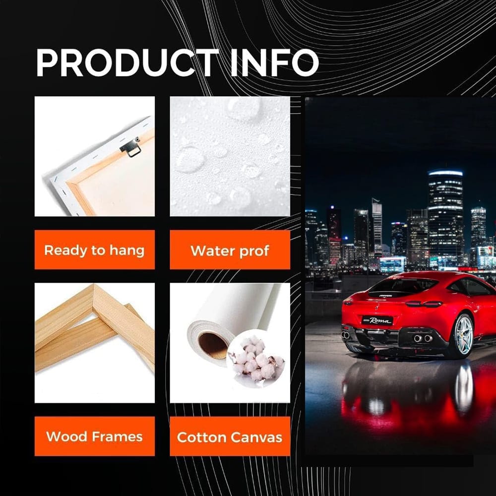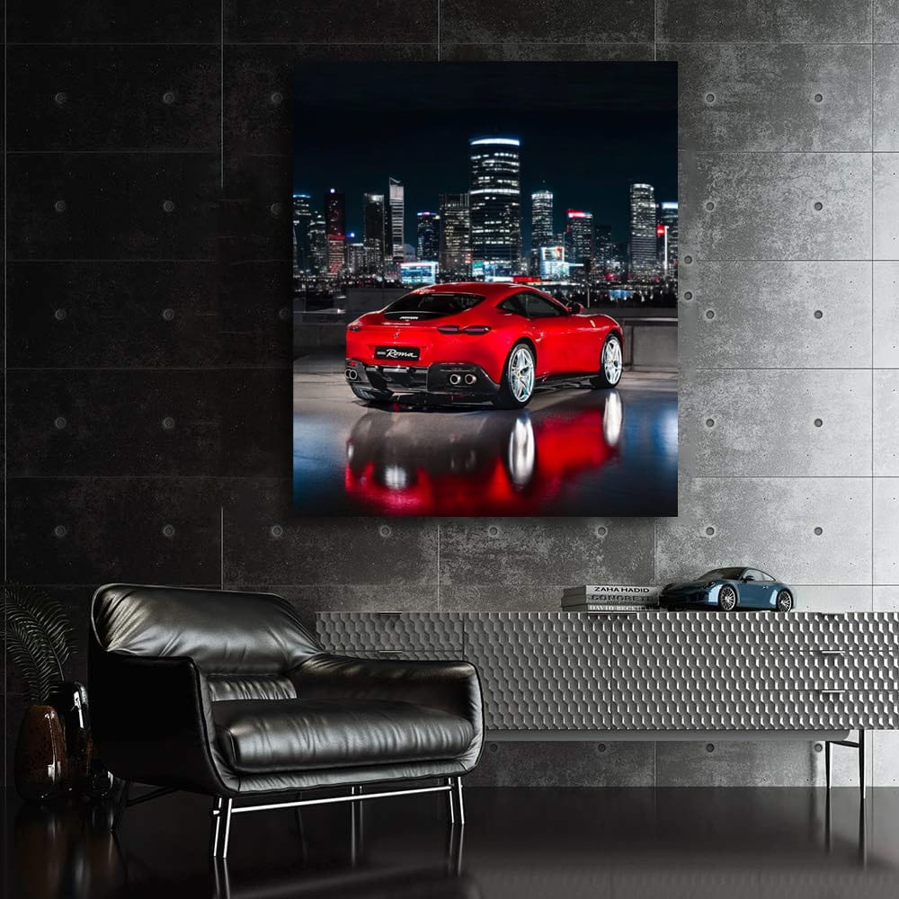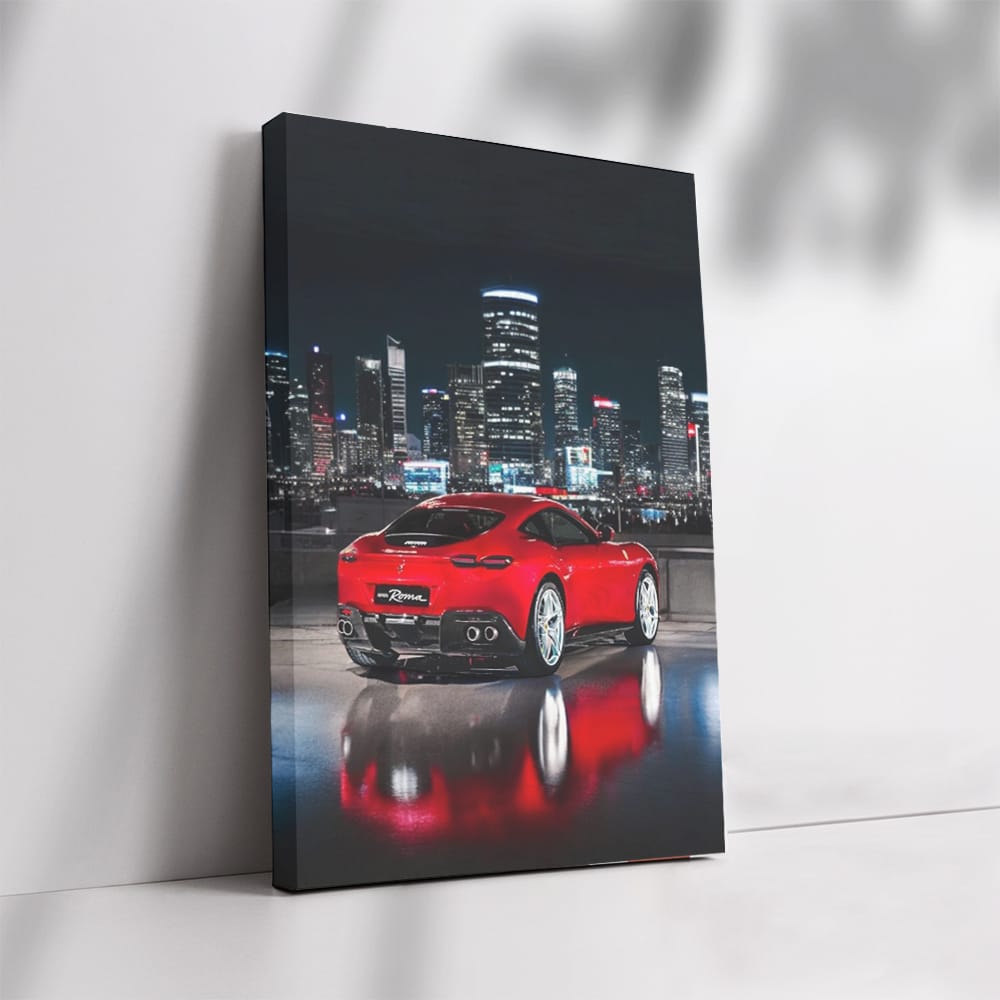 ** This painting is like a cherry on the cake for any car enthusiast. The poster with Ferrari Roma at night is just the bomb! Wall art that gives you goosebumps. The legendary racing car on the wall is not just decor, but a symbol of speed and style. See more from the collection: Ferrari Art