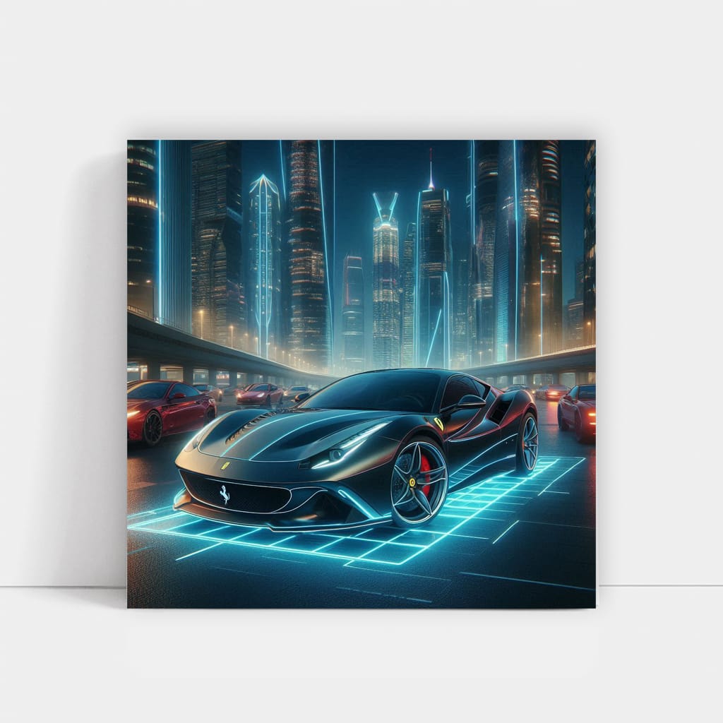 Ferrari Roma Neon - Sleek Elegance in Motion Wall Art