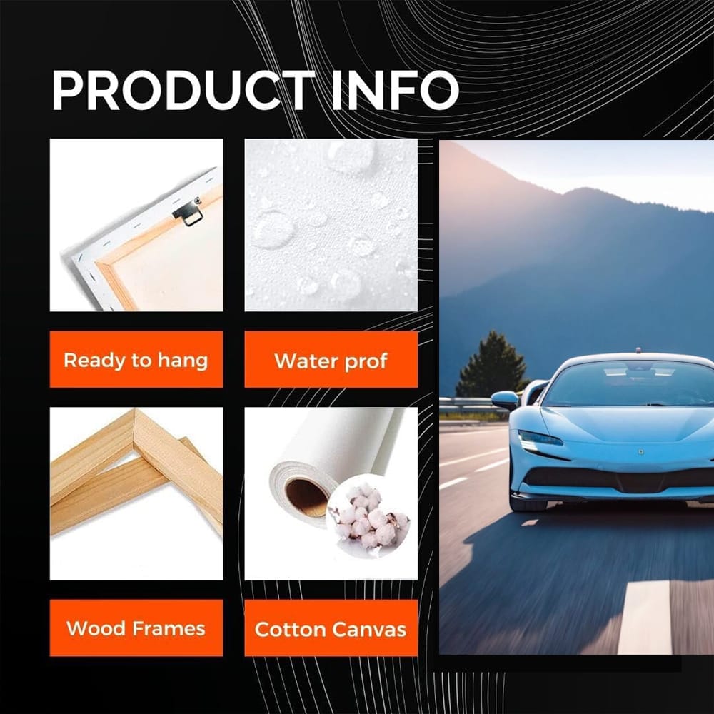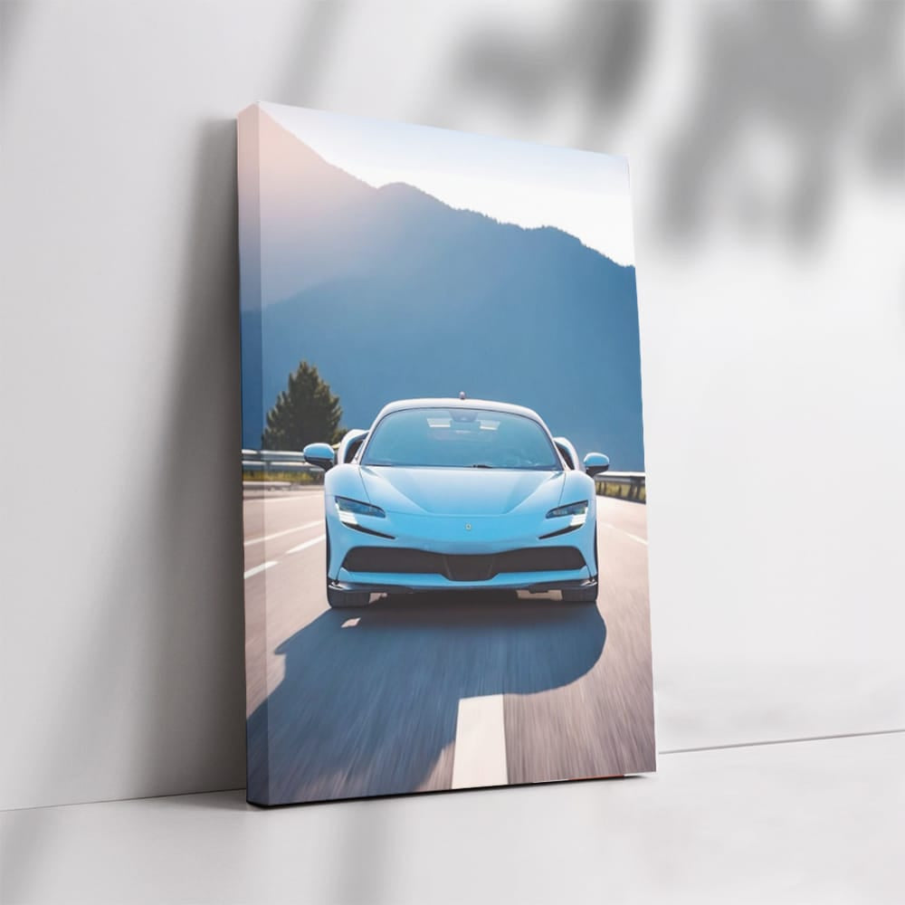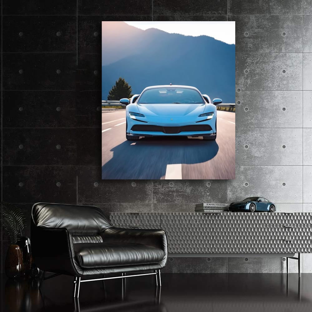 A painting of a Ferrari SF90 Stradale in the mountains is not just a poster for the wall, but a real wall art for connoisseurs of speed and power. This beast in the mountains screams "adrenaline" and "daring". For those who know a lot about cars, this is a must-have! See more from the collection: Ferrari Art