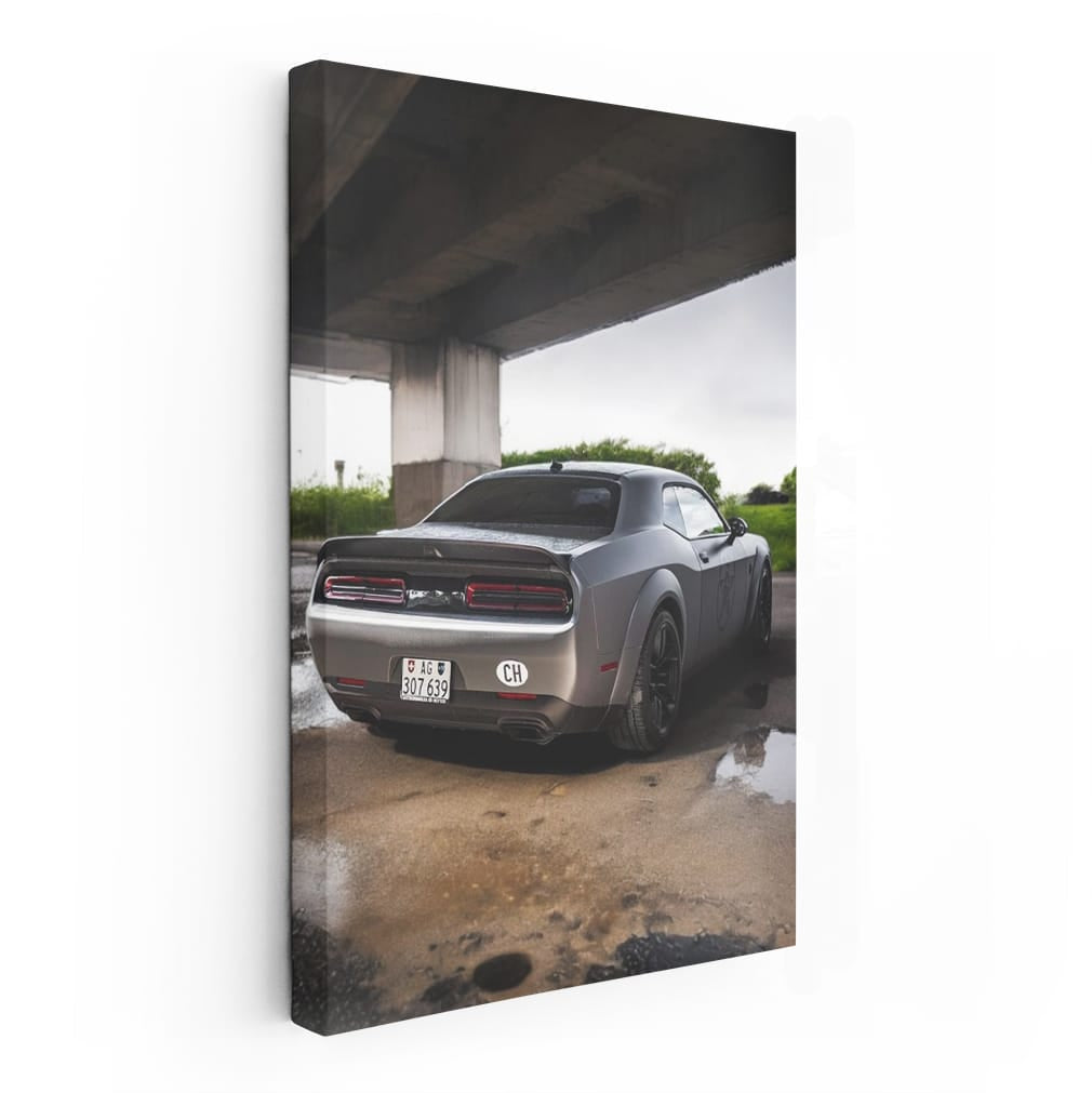 Fierce Challenger Hellcat Roars Under Bridge - Power Unleashed Wall Art