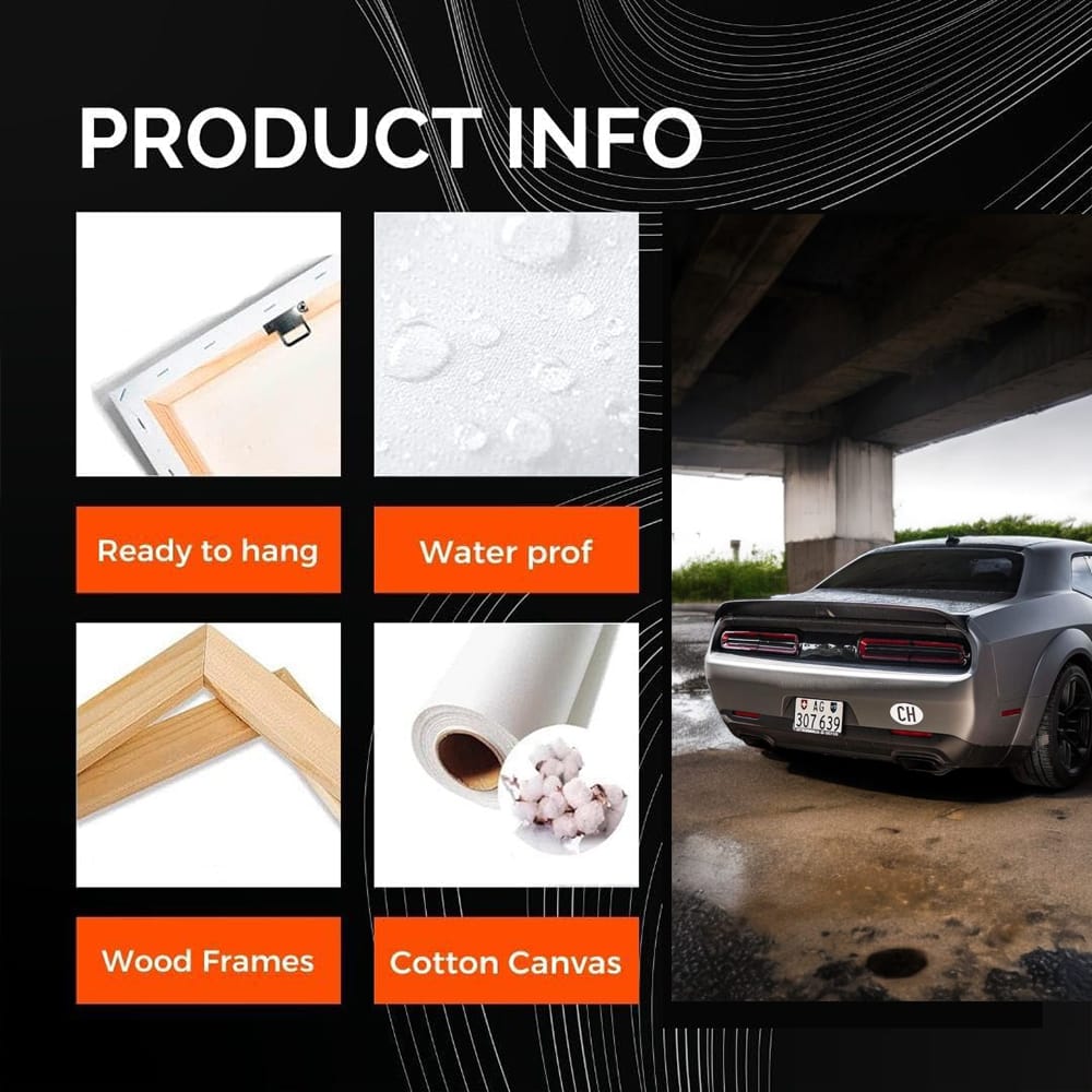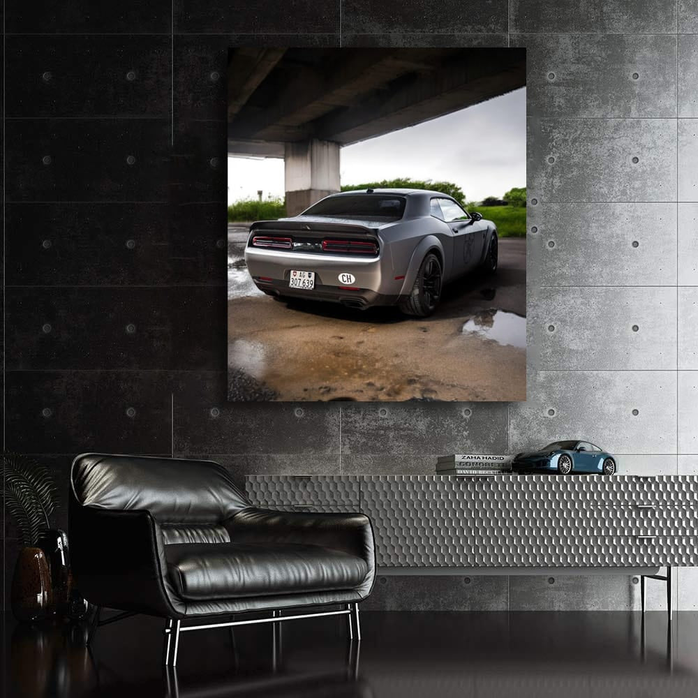 This painting is not just wall art, but a real challenge of speed and power! Challenger Hellcat under the bridge is a poster that every car fan dreams of hanging on the wall. Aggressive style, adrenaline at the limit - everything here says: "Are you ready for the roar of the engine?" See more from the collection: Dodge Charger Art