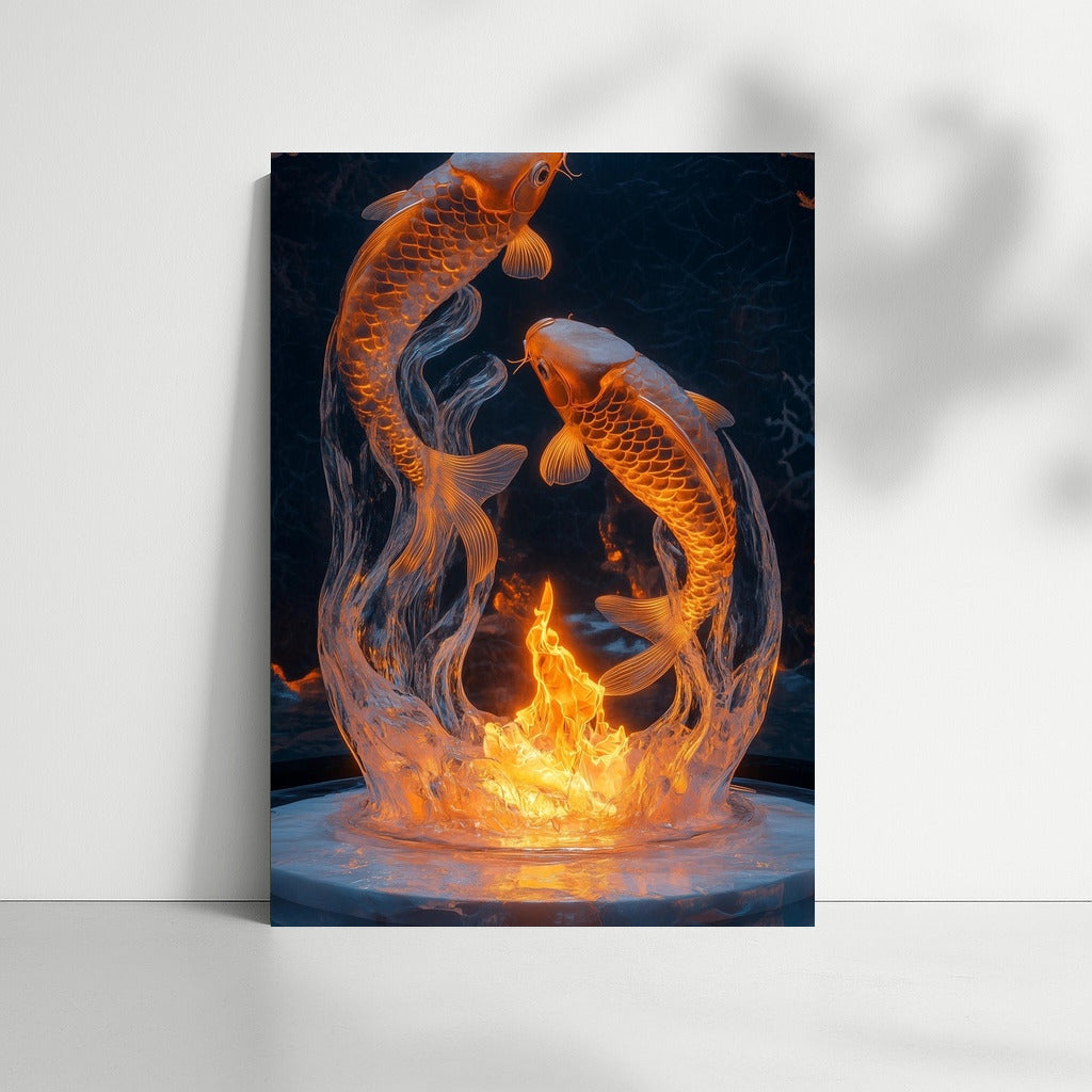 Immerse yourself in magic: a poster of graceful fish dancing in flames. Perfect wall art for fans of fantasy. See more from the collection: Animals Art