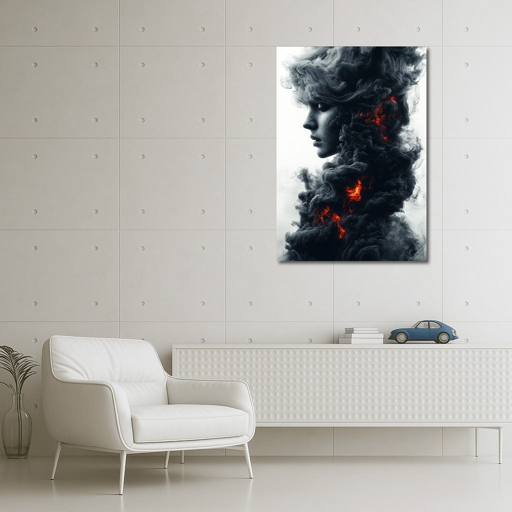 Mysterious girl in a cloud of smoke and fire. This poster will add drama and mysticism to your wall art. See more from the collection: Mixed Wall Art