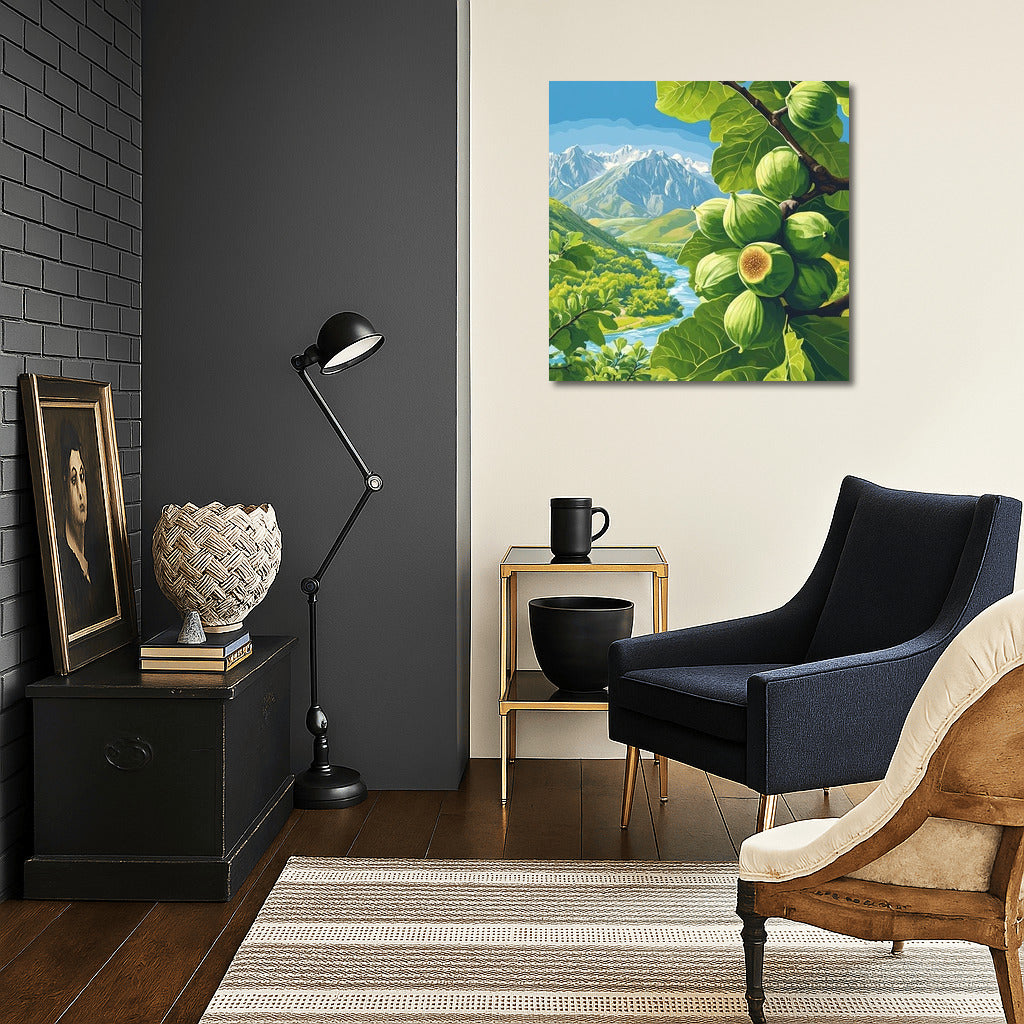 Immerse yourself in natural harmony! A vibrant painting of fig trees and majestic mountains will enliven any space. Dream wall art! See more from the collection: Food Art