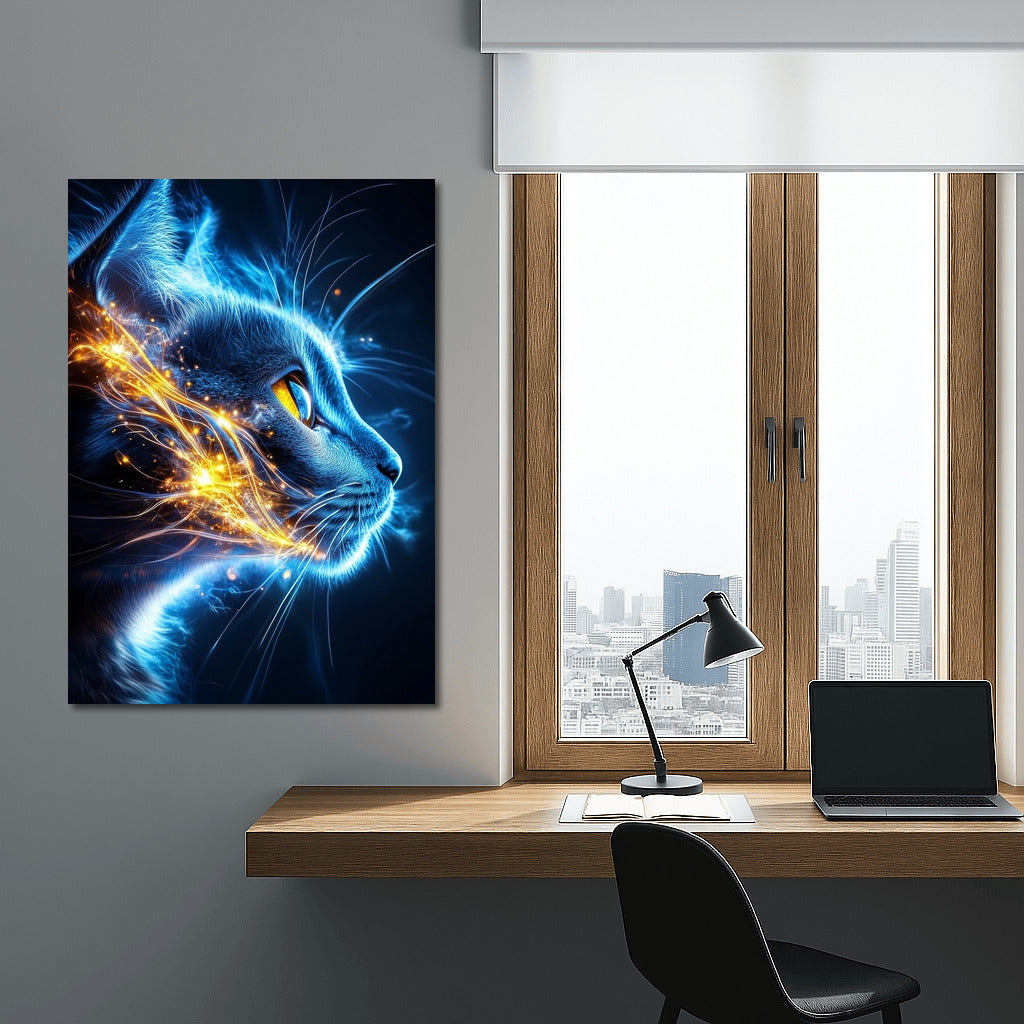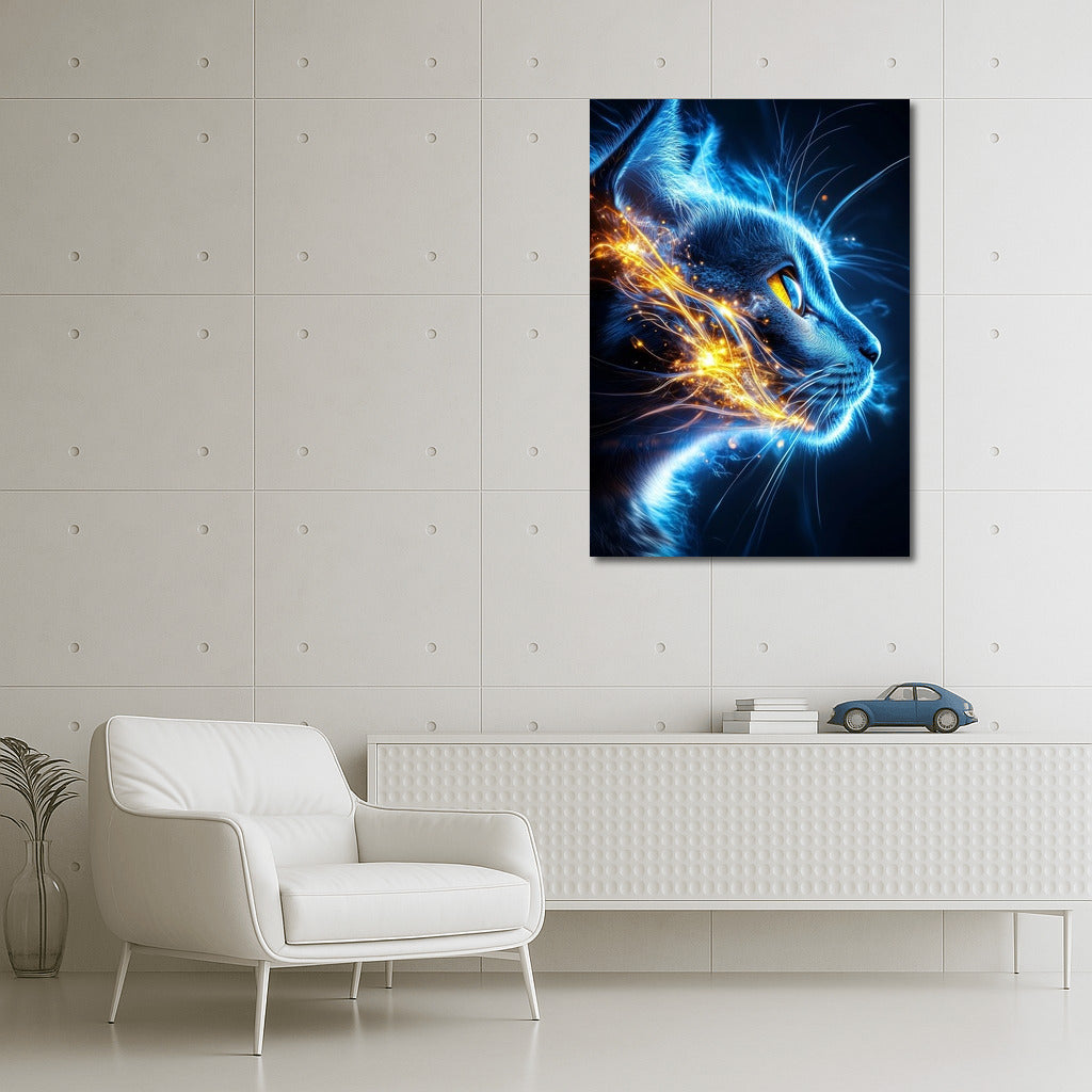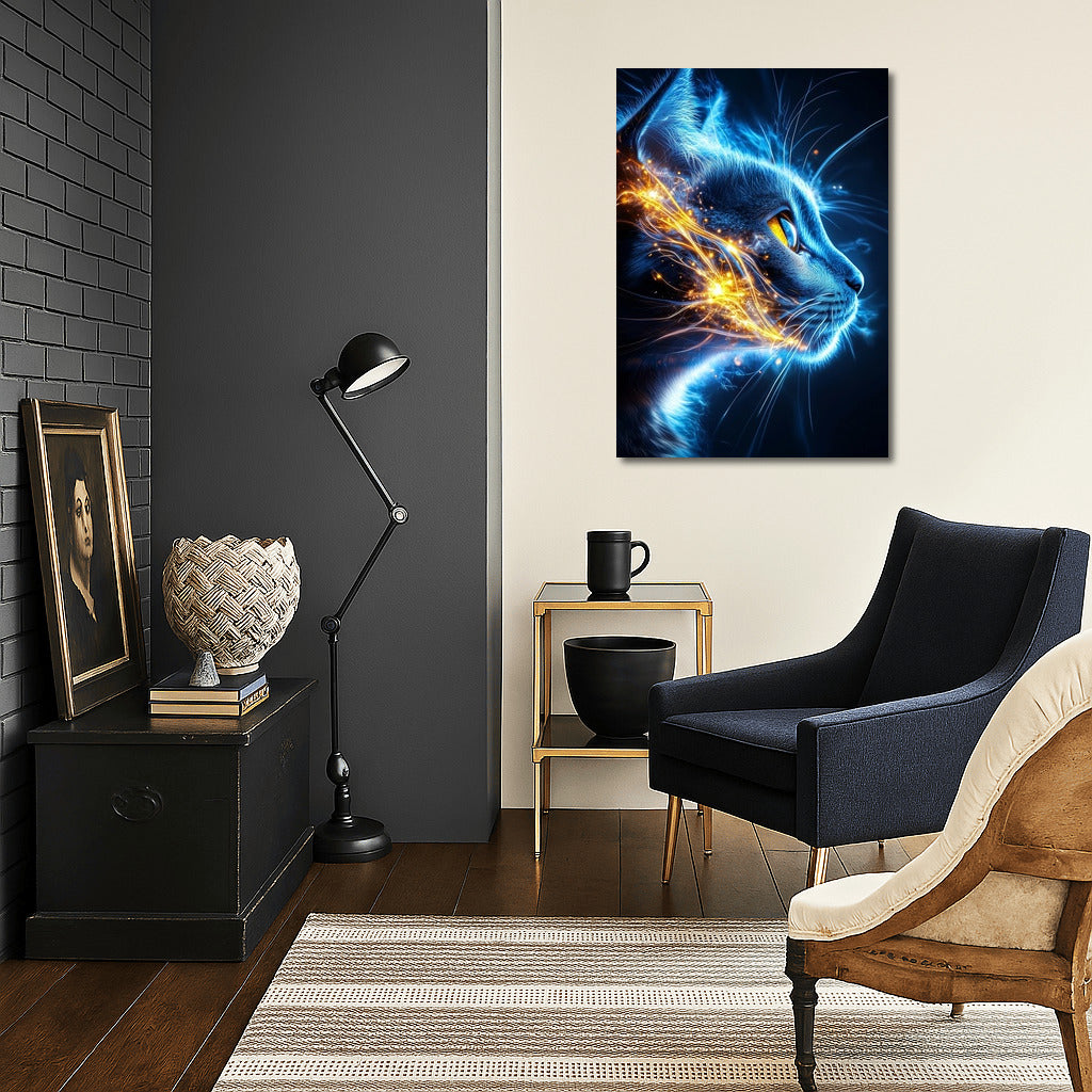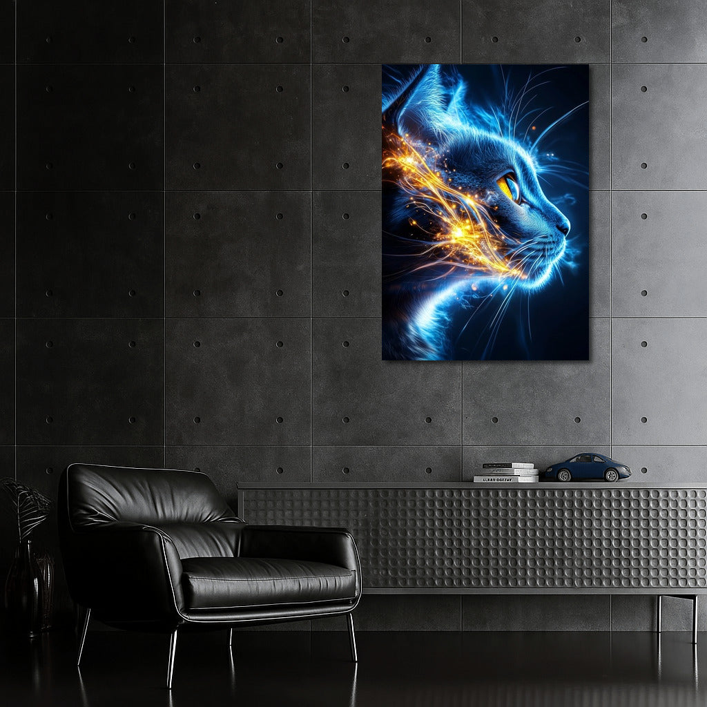 A magical cat in the glow of fire and light. This poster will liven up your space, adding mystery and fantasy to your wall art. See more from the collection: Animals Art