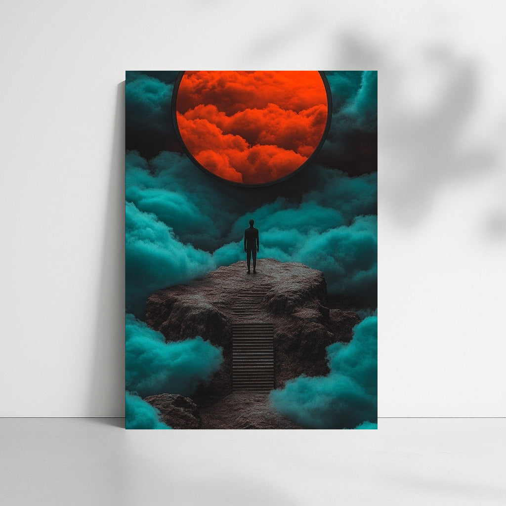 A poster with a mystical sky and a bright orange circle. Wall art that inspires a journey into a fantasy world. See more from the collection: Mixed Wall Art