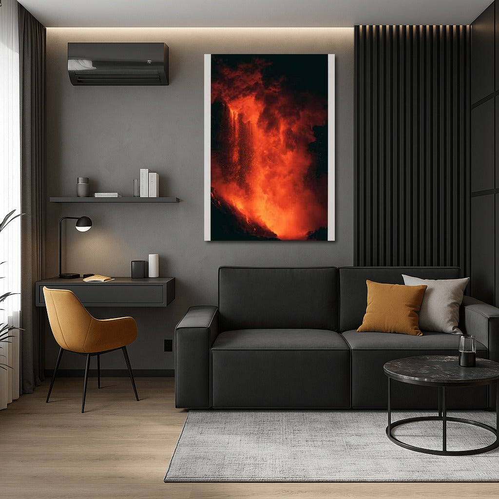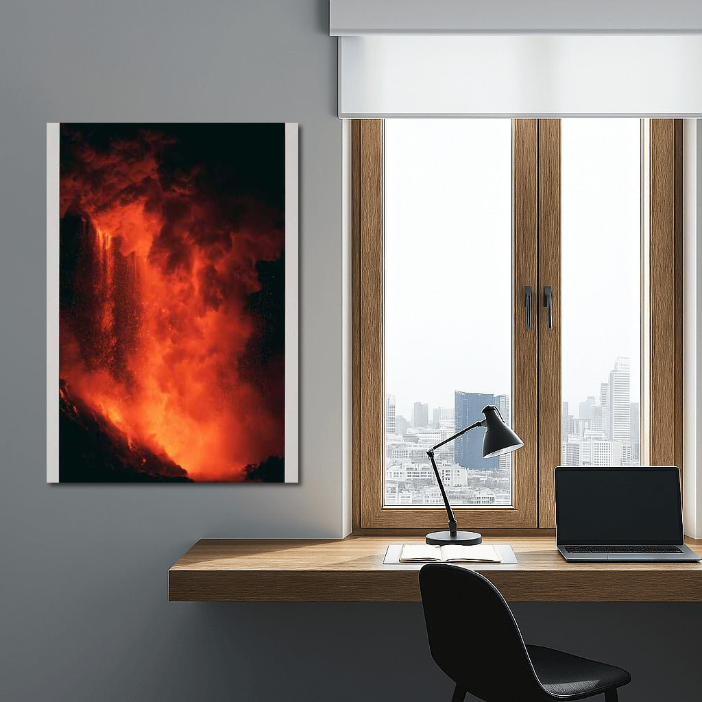 The fiery element of the volcano comes to life in this wall art. Feel the power of nature in vibrant colors! See more from the collection: Nature & Landscapes Art